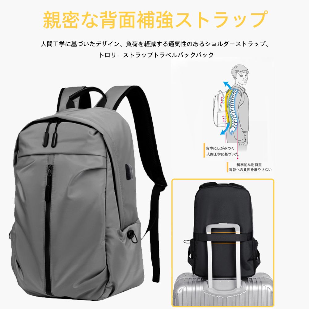 【軽量で大容量/USB充電ポート】収納力は十分にあり。A4サイズ、PC、教科書、傘、衣類、飲み物、お弁当、重い荷物を入れても安心感あり。通学や通勤や旅行や出張などにおすすめです。