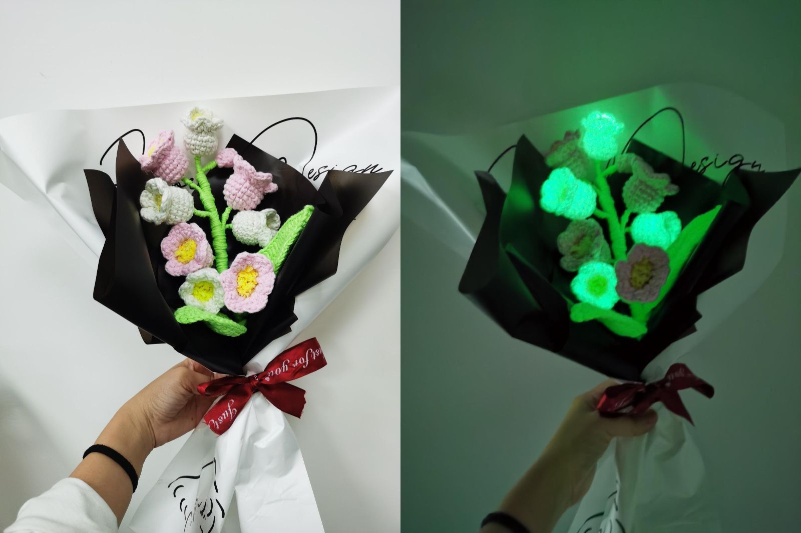 光を吸収して暗闇でしっかり発光する蓄光タイプで、夜になると幻想的でインパクトのある仕上がりに。