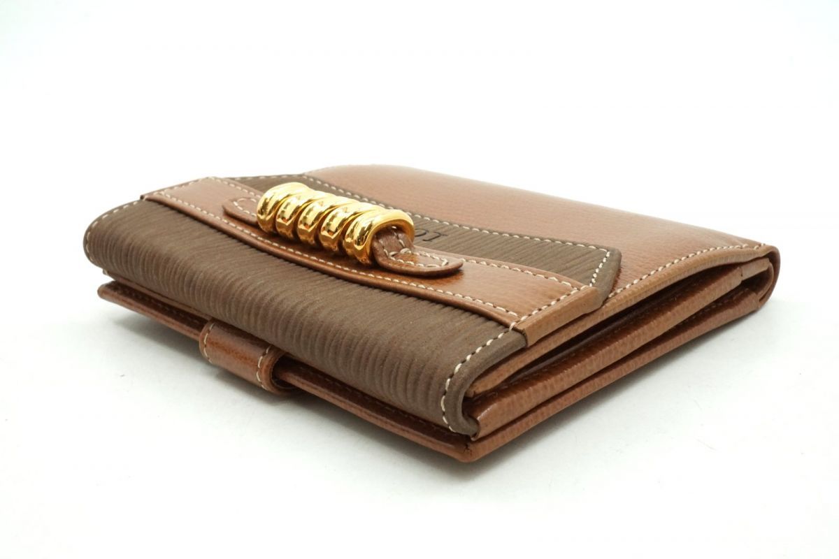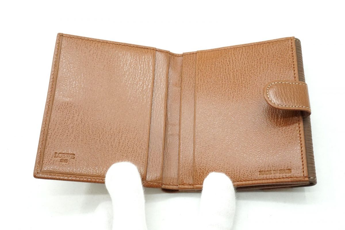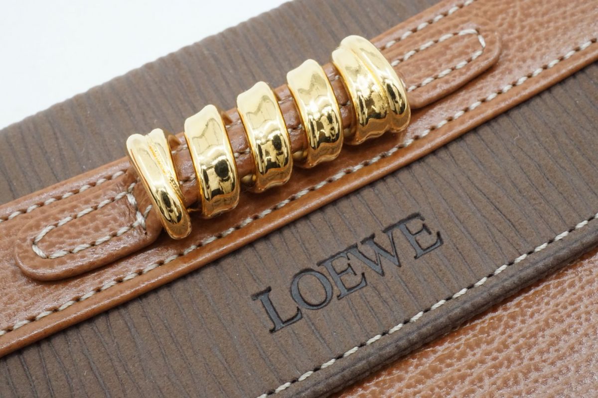 ロエベ ヴィンテージ ベラスケス Wホック 二つ折り 財布 ロゴ コンパクトウォレット レザー 茶 ブラウン LOEWE 5909k