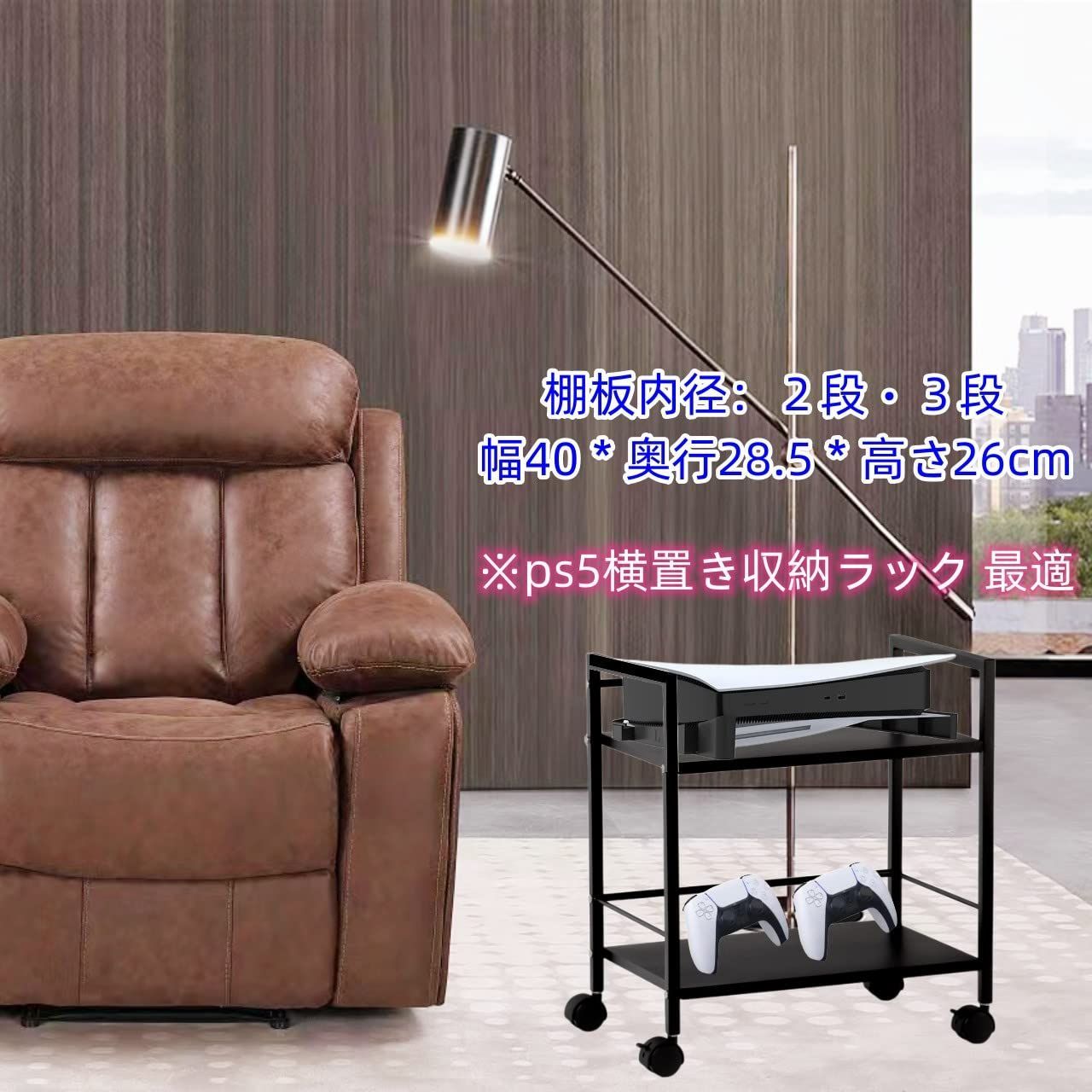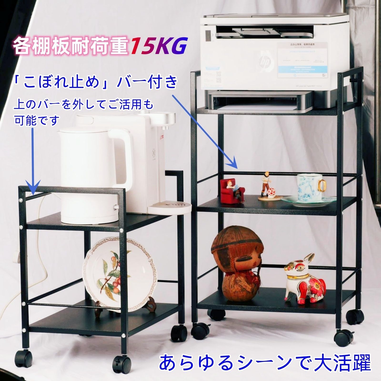 スチールラック PS5 横置き 本体2.6kg 耐荷重30kg 幅43x奥行30x高さ48cm スタンド 収納ワゴン プリンター台 デスク下/サイド収納 ストッパー付きキャスター 棚板1枚耐荷重15KG (ブラック 2段)