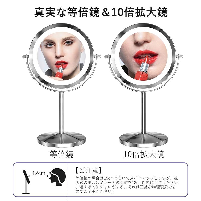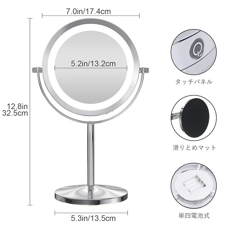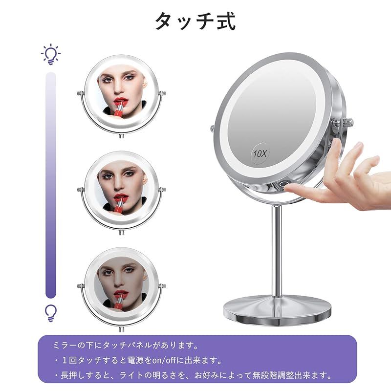 拡大化粧鏡 10倍鏡付きLEDミラー タッチパネル スウィッチ 無段階明るさ調節可 コードレス 老眼の方に優しい