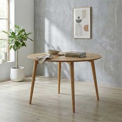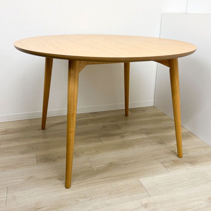 円形テーブルとチェアの流れるような曲線が、お部屋に圧迫感を与えず、北欧スタイルやジャパンディな空間を演出。