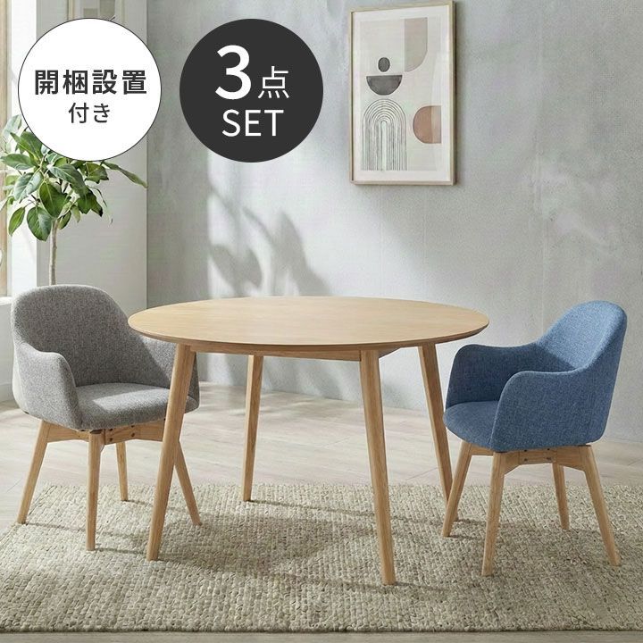 天然木の温もりと曲線美に包まれる北欧ナチュラルな円形ダイニング3点セット(テーブル110cm+チェア2脚)