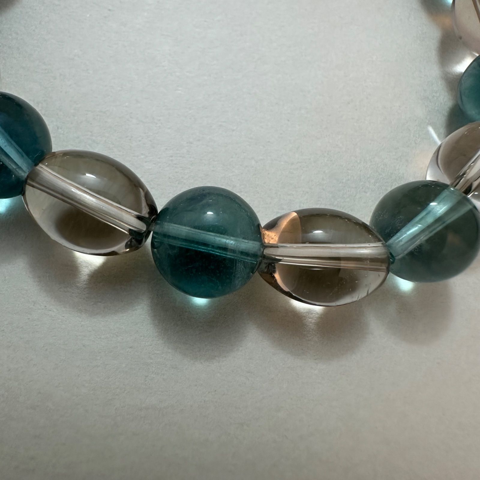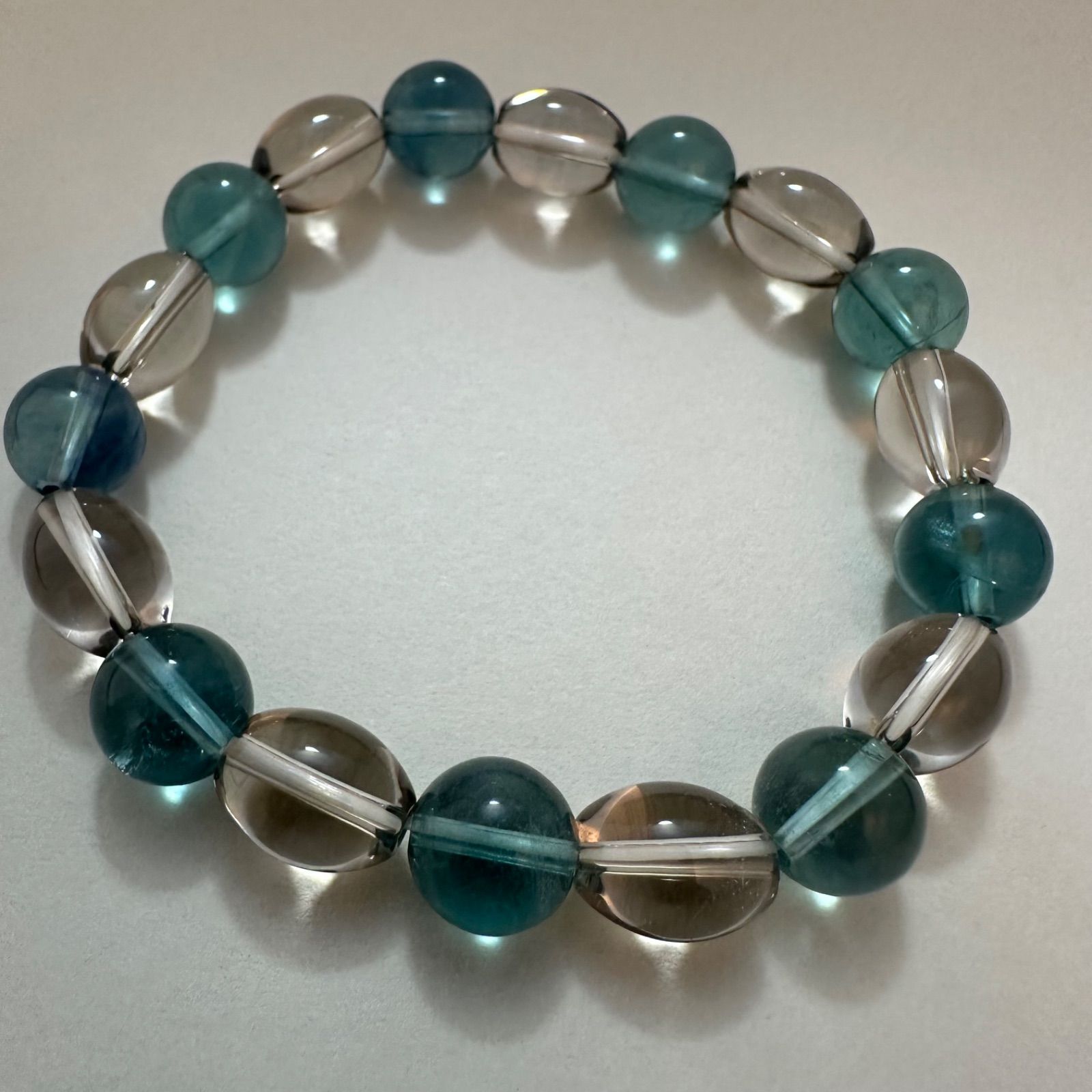 スモーキークォーツ、ブルーグリーンフローライトのブレスレット【天然石ブレスレット】