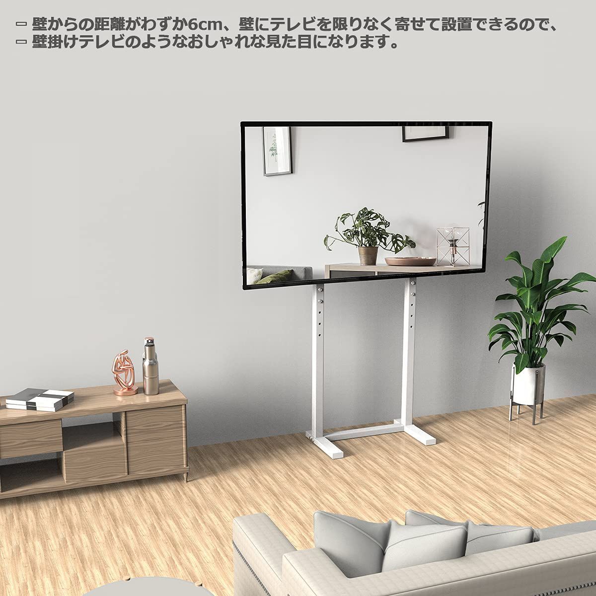 【壁に限りなく寄せる】棚が搭載されていないシンプルなデザインはどんなお部屋でもすっきりとテレビを設置することができます。壁からの距離がわずか5.6㎝で、壁にテレビを限りなく寄せて設置できるので、壁掛けテレビのようなおしゃれな見た目になります。