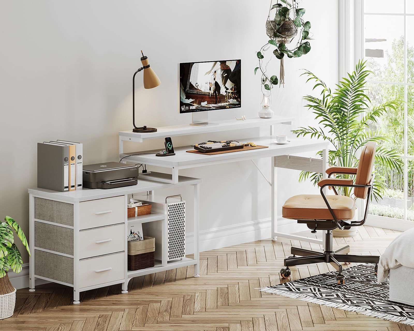 【引き出し付きデスク・収納力満載】デスクの足元には一体型の引き出しとラックが備え、本や書類などを使いたい時にサッと取り出せ、PC本体も楽に置けます。たっぷりの収納でデスク周りをスッキリ快適に!また、L字型のデザインで部屋のコーナーを最大限に活用し、ご家庭でもオフィスでも、日常の仕事に十分なスペースを確保できます。