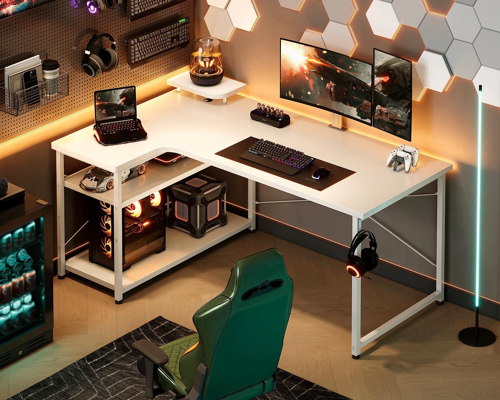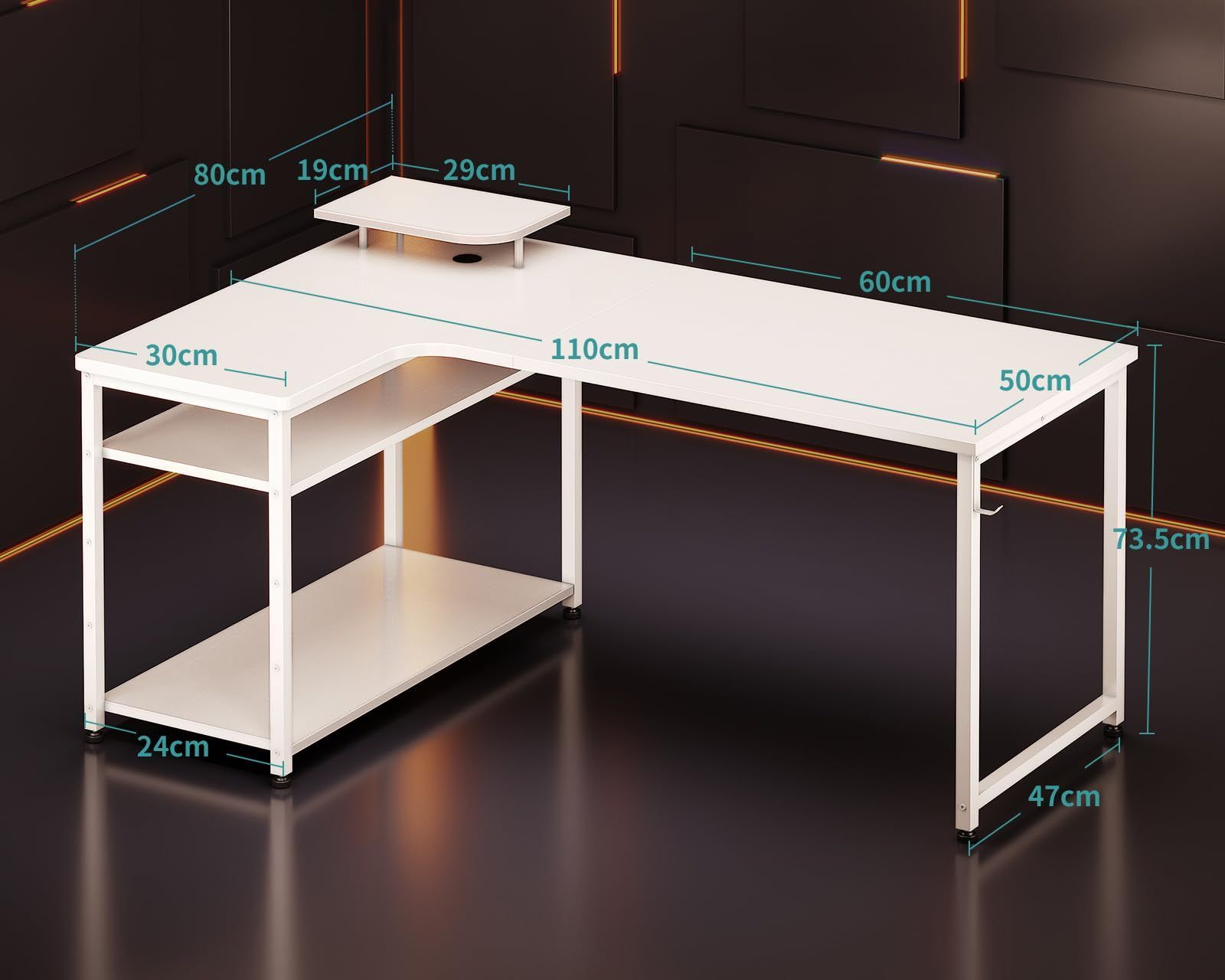 【ゲームと仕事両立】L字ゲーミングデスクは実用性が高く、ゲームプレイ、在宅勤務、書斎机、勉強机など様々なシーンで大活躍!モニター台を利用して目線をあげることで、作業時の姿勢を改善し、テレワークが快適になり、作業効率も格段に上がります。