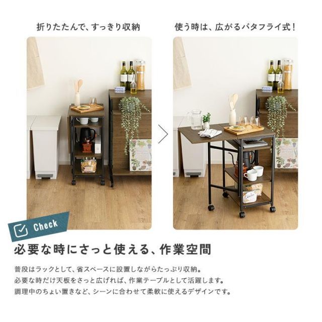商品名:ヴィンテージ調 調節可能棚付き バタフライワゴン