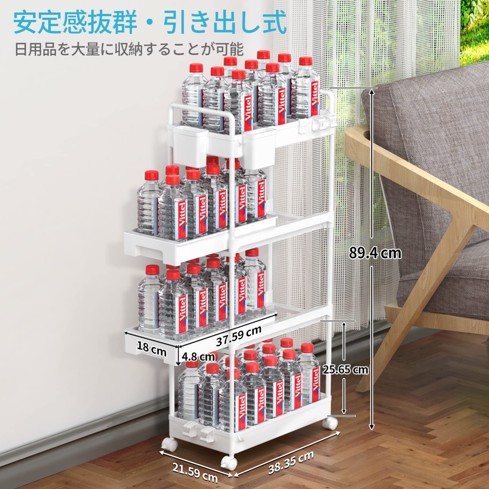 商品の寸法 21.6奥行き x 38.4幅 x 89.4高さ cm