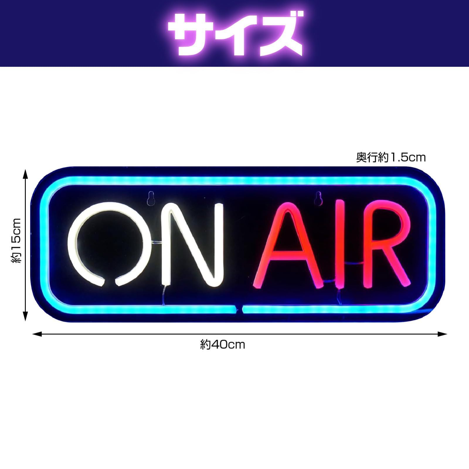 【ON AIR サインランプ 仕様】 ◎サイズ:幅40×高さ15×奥行1.5cm ◎付属品:壁掛け用フック×2個、壁吊り用チェーン×1本 ◎USBケーブル長さ約2メートル(※USB給電方式 、別途USB接続のコンセント口をご用意ください)※モニターの環境により、色の見え方に若干差が生じる場合がございます。