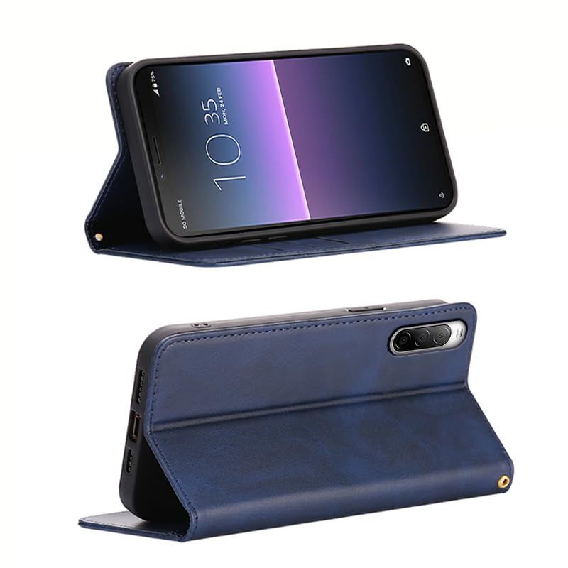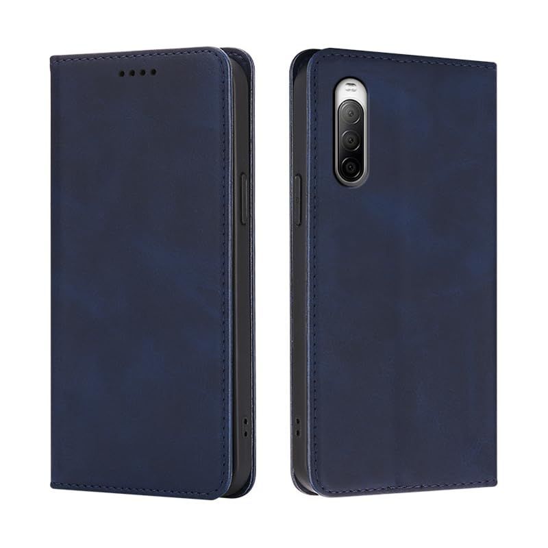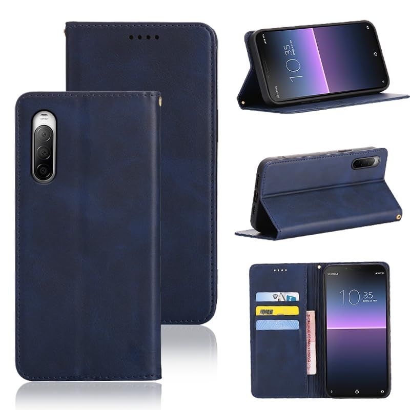 に適用するXperia 10 II エクスペリア 10 II docomo SO-41A au SOV43 ケース 手帳型 ノートブック型携帯電話保護カバー多機能携帯電話ホルスター財布携帯電話ホルダーバンプパターンテクスチャ耐久性摩擦耐性携帯電話ケース男性と女性に適した多色オプション (ダークブルー)