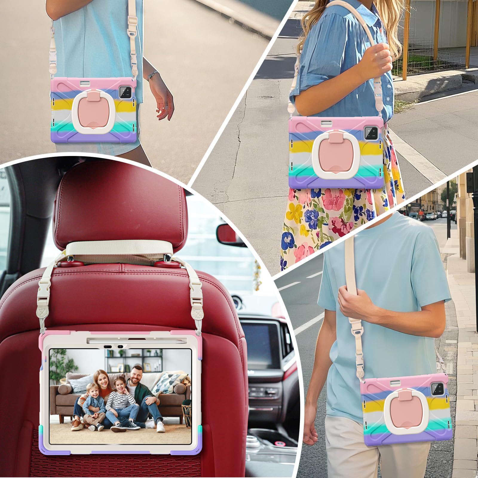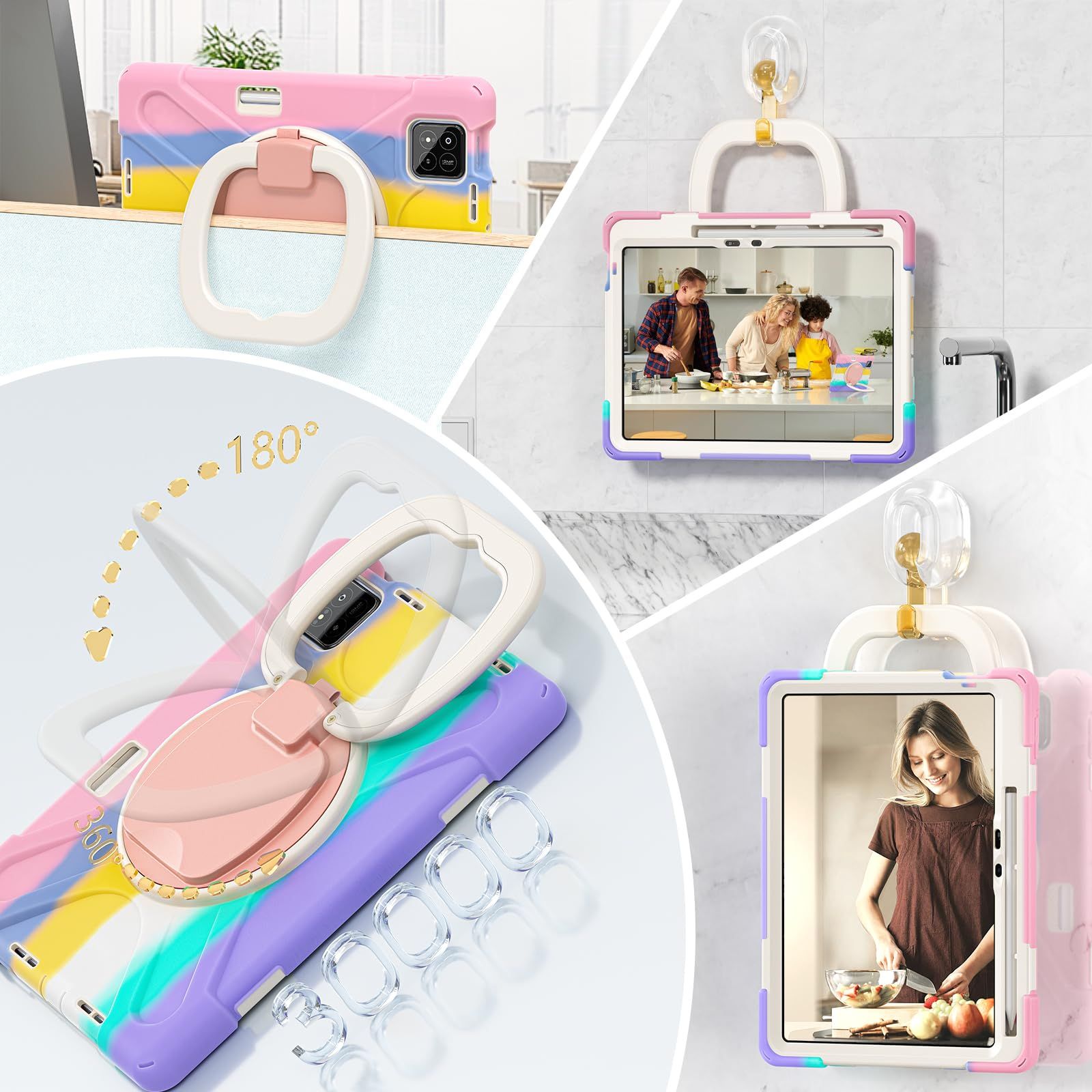 スタンド機能:動画鑑賞やタイピングなどシーンに合わせて角度を変えられる360度回転、段階調整可能スタンド。レインボーデザインで、カジュアルながらオシャレにきまる。