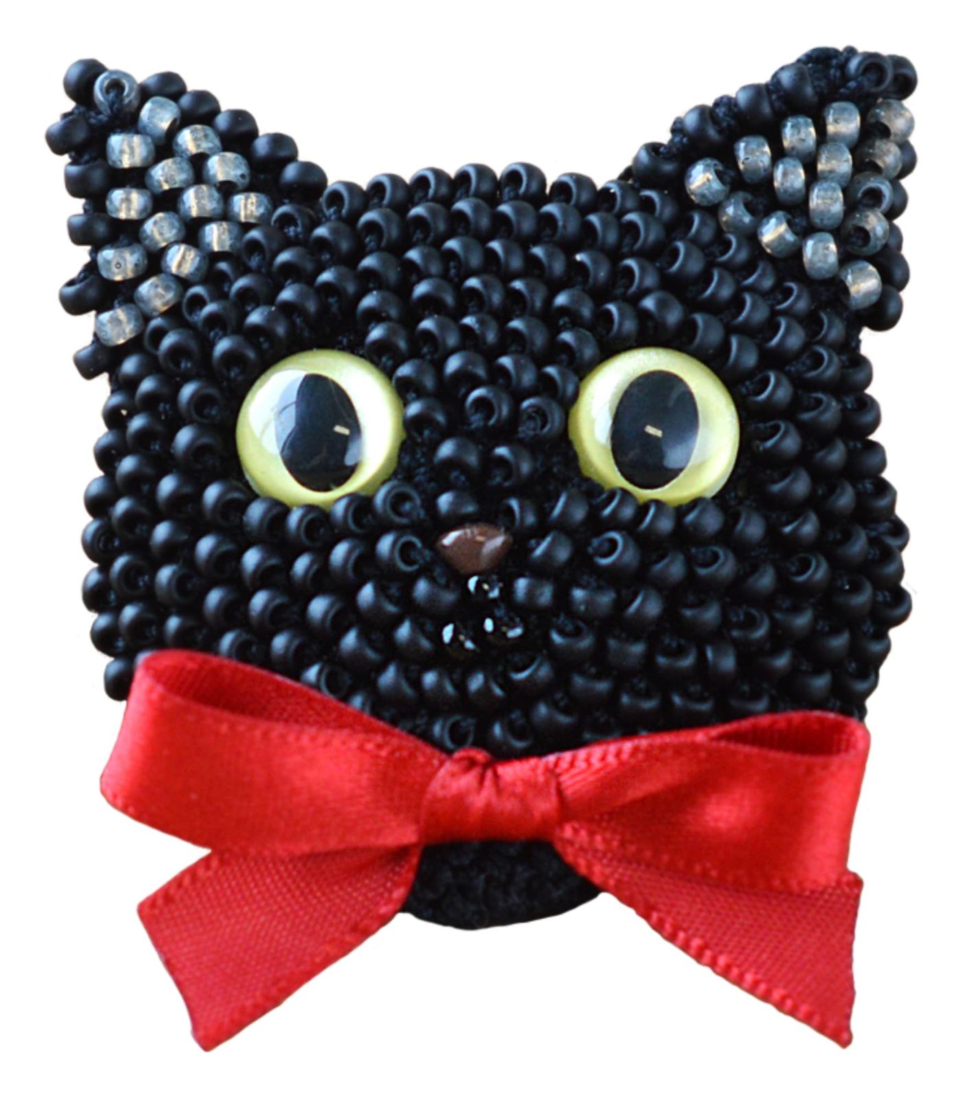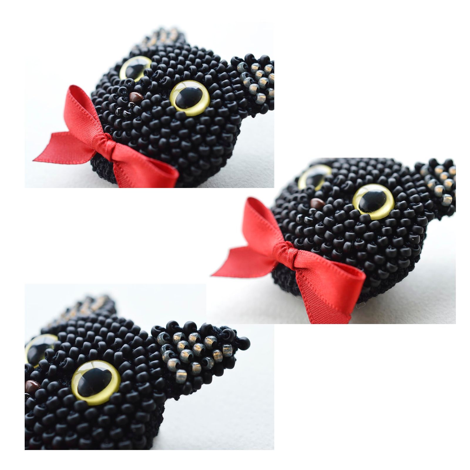 MIYUKI ( ミユキ ) ビーズキット かぎ針で編む ビーズ編み の 猫 ブローチ キット サイズ約 6cm×5.5cm 黒猫 BFK-658