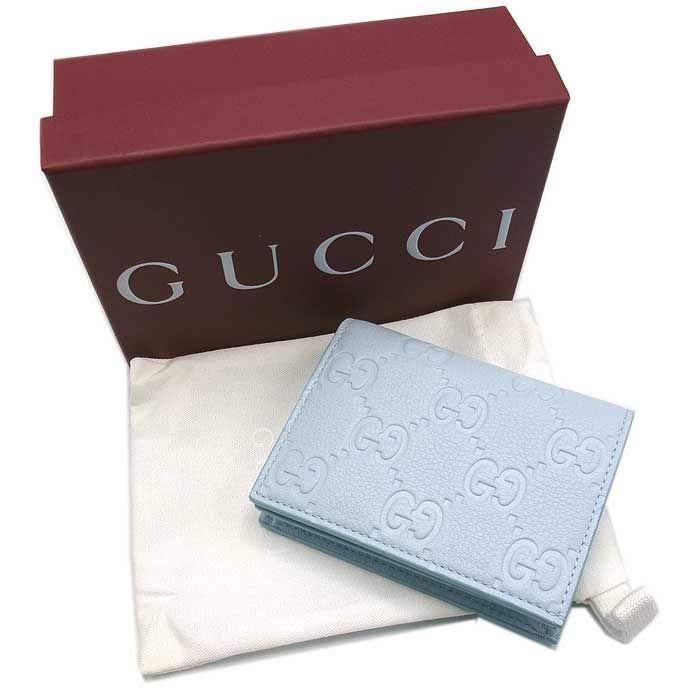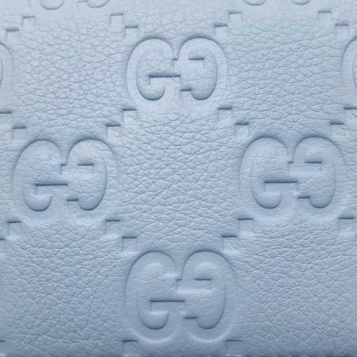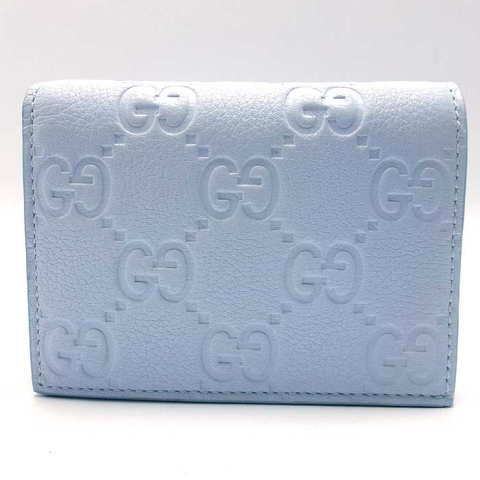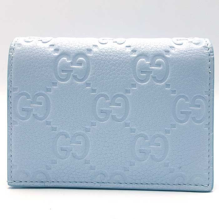 ■グッチ 財布 二つ折り財布 (小銭入れ有り) GUCCI グッチシマ レザー エンボスGG ミニ ウォレット 815901 AAEEM 4950 (ライトブルー系) ブティックライン レディース MINI WALLET(655M) BRAINY CALF GG 1.5/GG EMBLEM LEATHER