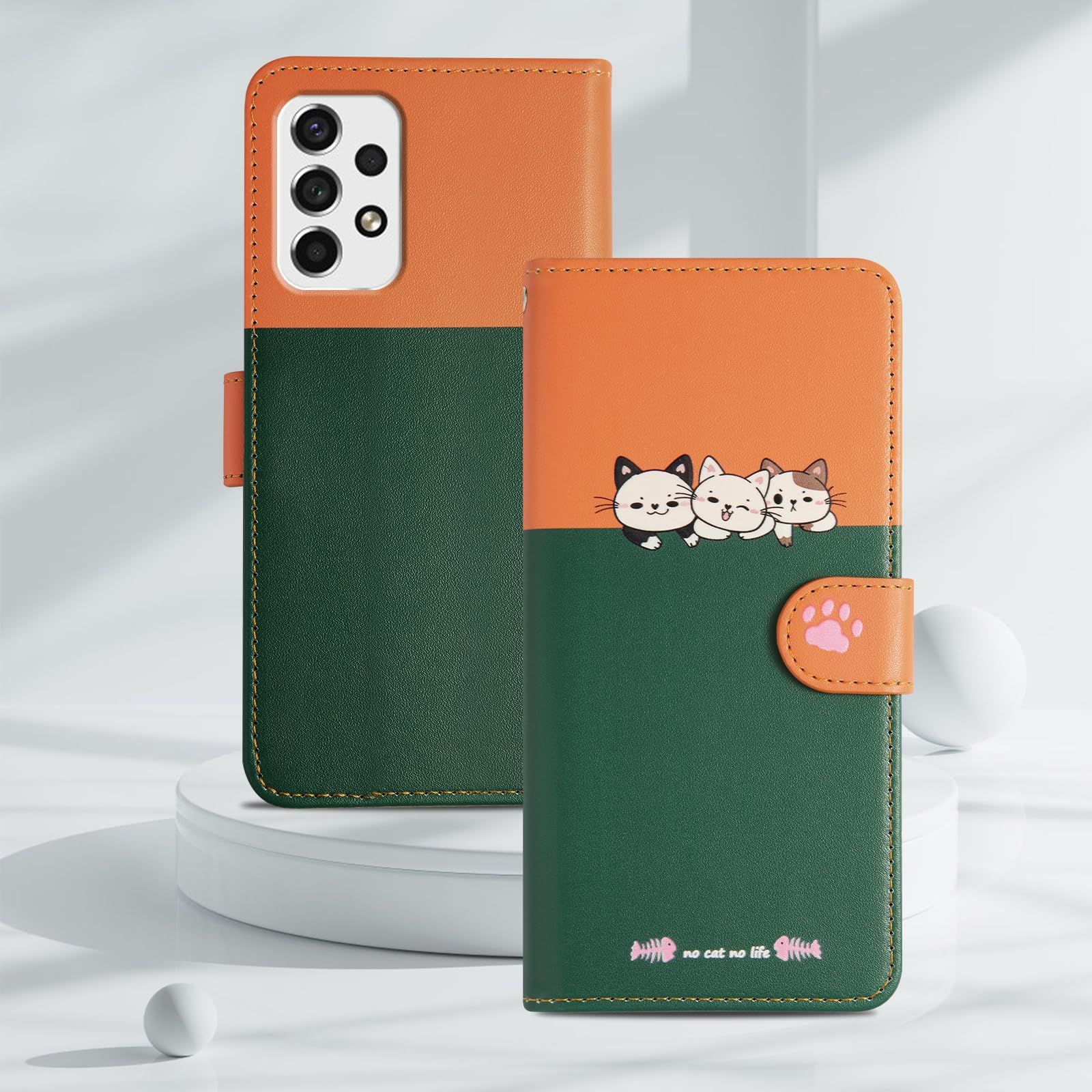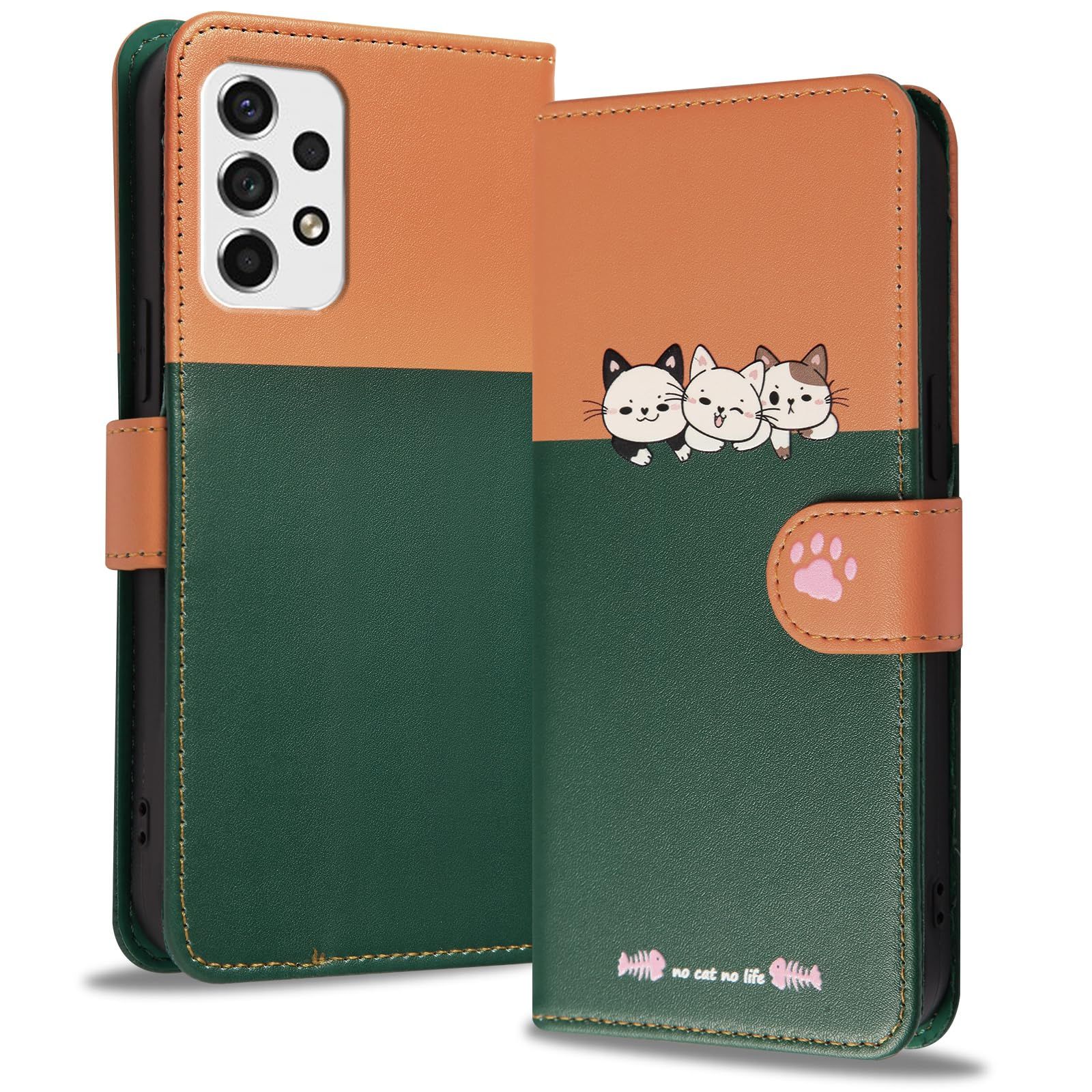 対応 Galaxy A53 ケース 手帳型 ギャラクシーA53 ケース かわいい猫 スマホケース ギャラクシーA53 5G ケース カード収納 Galaxy A53 5G ケース 手帳型 スタンド機能 A53 Galaxy ケース 手帳型 6.5インチ SCG15 ケース 手触りが良い GalaxyA53スマホケース 耐衝撃 Galaxy SC53C ケース 手帳型-グリーン