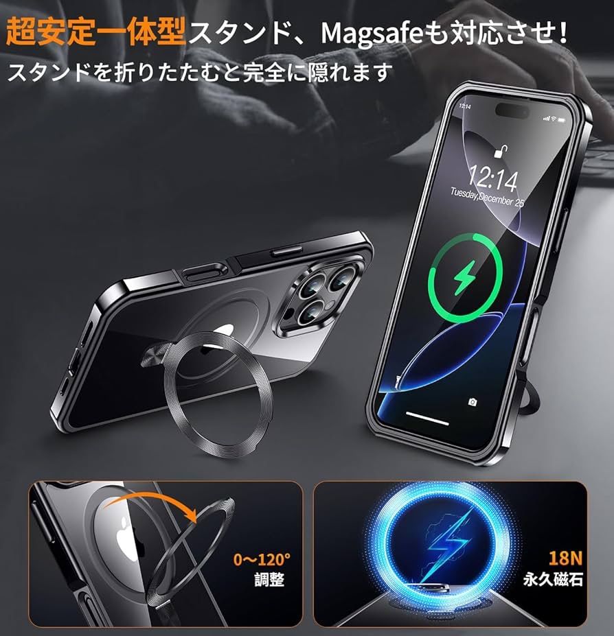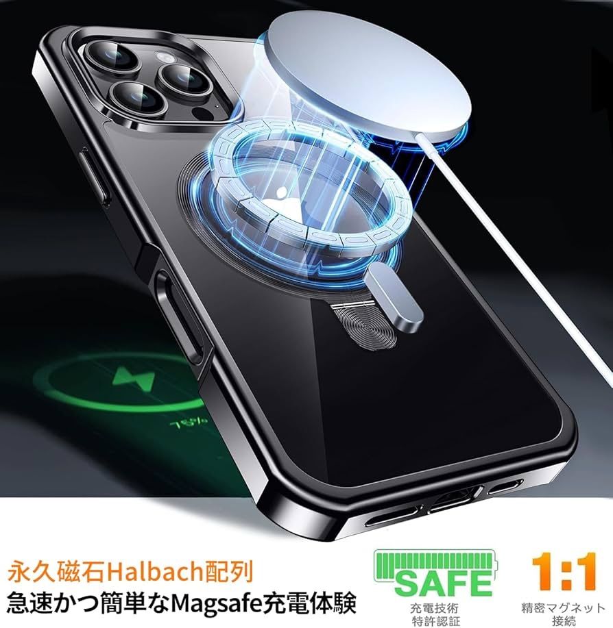 【3in1!スタンド・リング機能・Magsafe対応】このiPhone 16 Pro ケーススタンドは、三合一デザインを採用しており、最大の便利さを提供します。スタンドは0°-120°で自由に調整可能です。動画視聴時に非常に便利で、縦置きでもSNSの確認やニュース、レポートなどの文書を閲覧することができます。また、スマートフォンリングとしても使用でき、片手で簡単にスマートフォンを持つことができ、落下を防止します。このいphone 16 pro ケースはN56磁石を内蔵しており、MagSafeアクセサリーに素早く吸着します。独自のハルバッハ技術により、急速充電にも対応しています