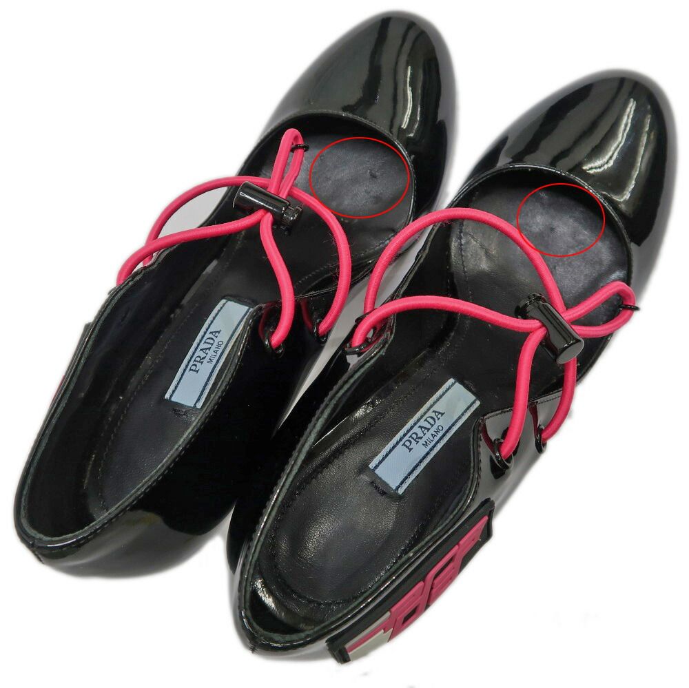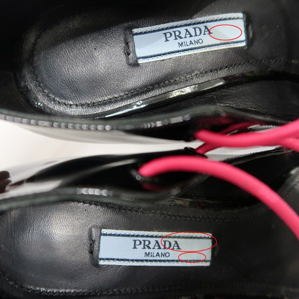 また、インソール上の水色のPRADAのタグには、近くでよく見ると多少の黄ばみがあり、アウトソールは擦れています。