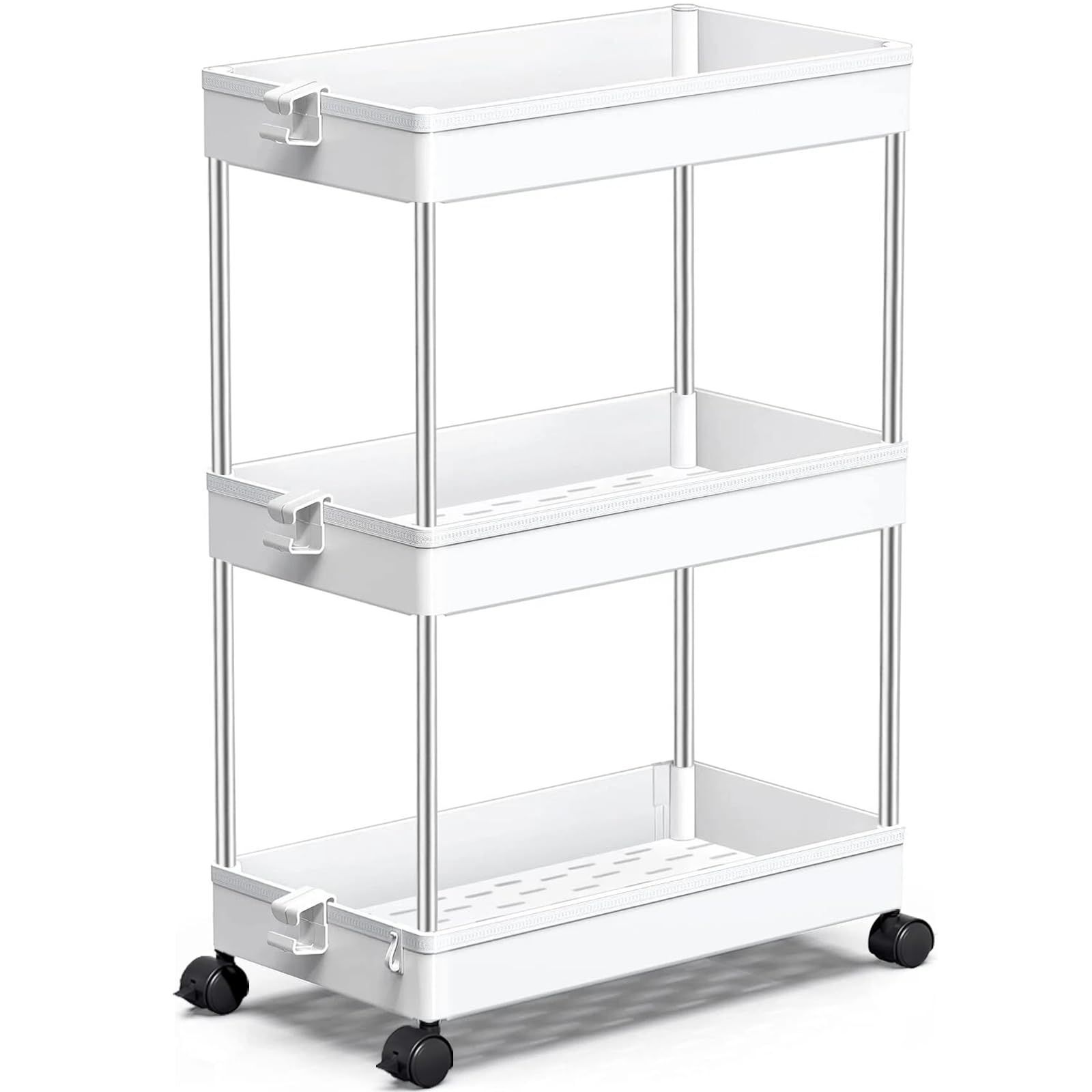 収納ワゴンには小物を掛けられる取り外し可能なフックが3つ付属し