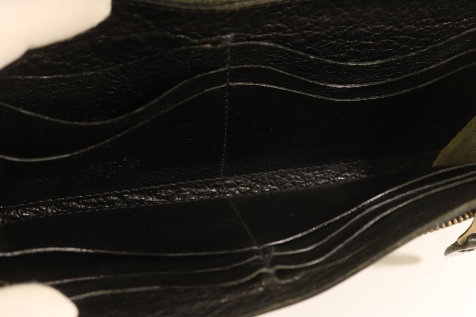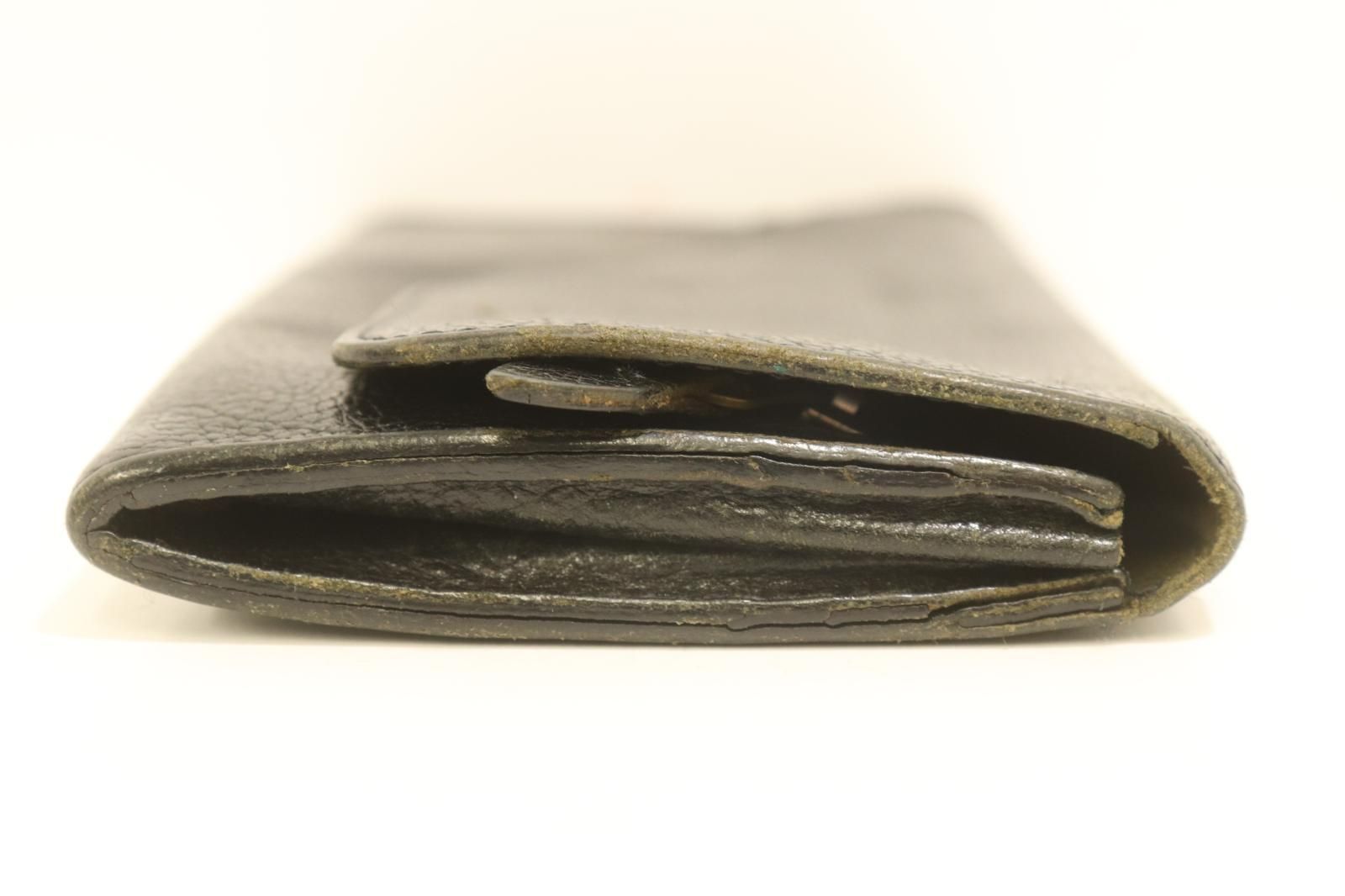【状態説明】全体的に汚れ・スレが見られます。小銭入れ部分にダメージが見られます。留め具部分に錆汚れが見られます。表面ボタン裏にダメージが見られます。