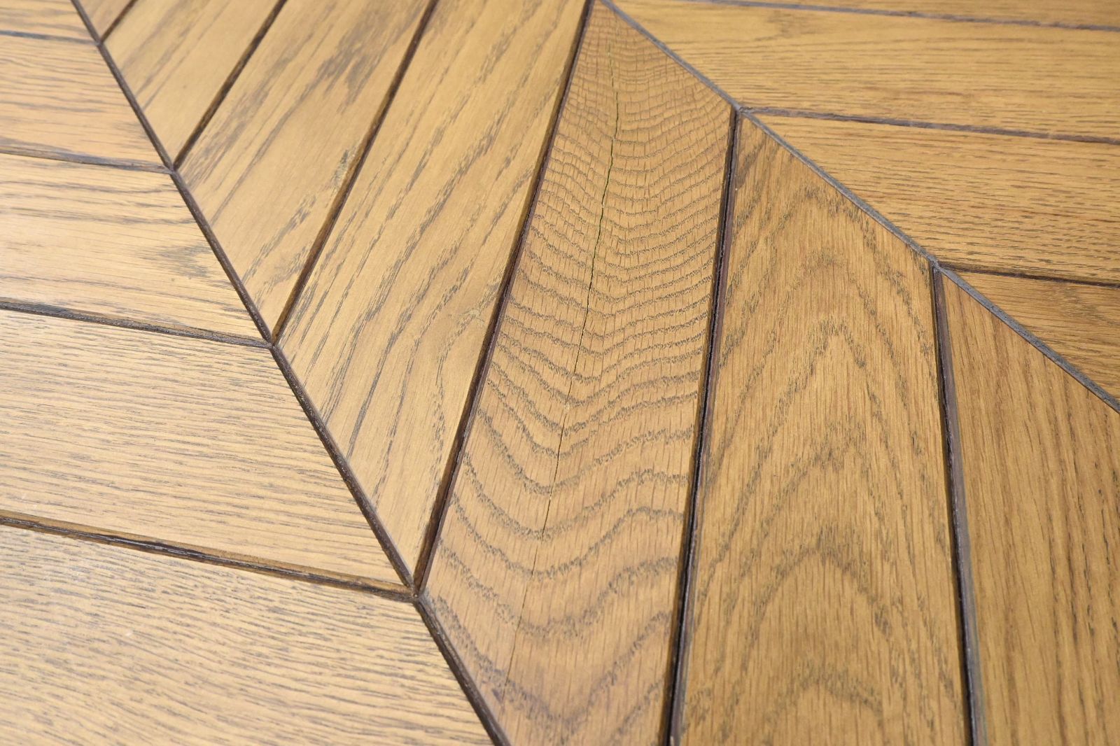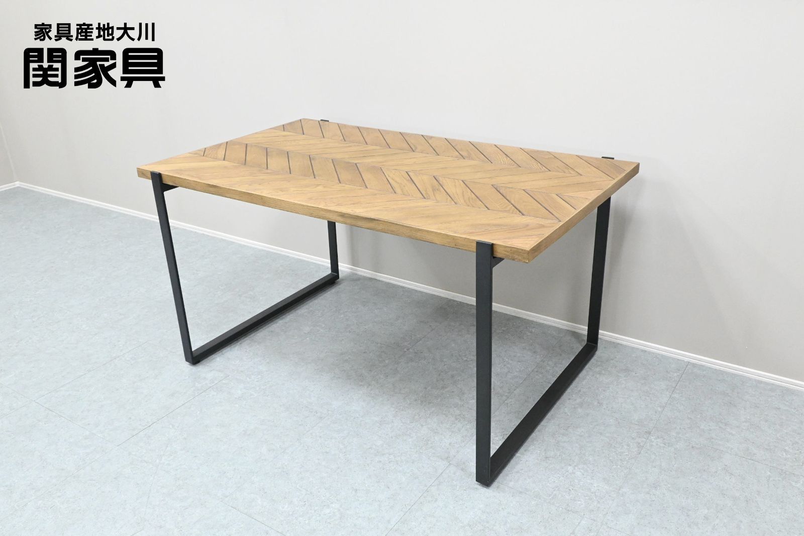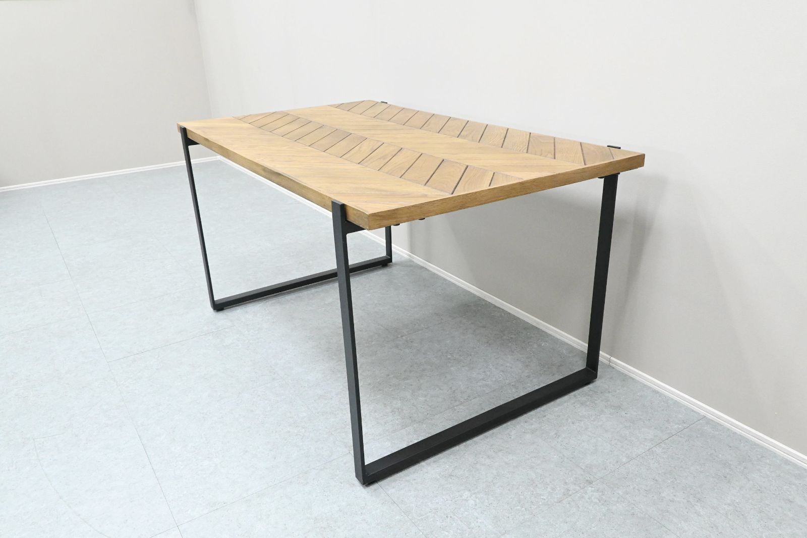 柄の存在感が程よく、シンプルな意匠の椅子とも、ビンテージ品のように主張の強い椅子ともスタイリング可能なヘリンボーン柄天板。