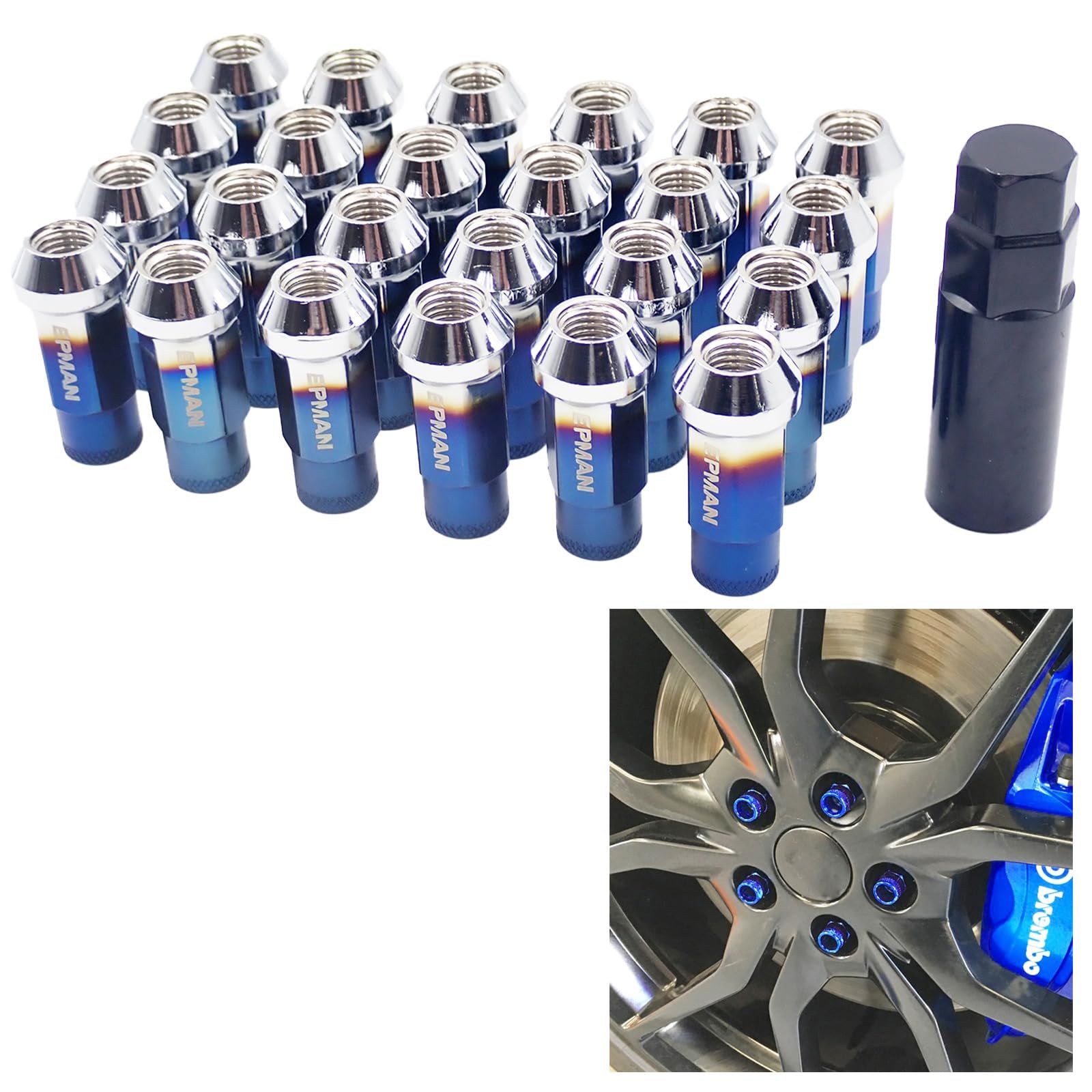 Wellvie classy キャラバン NV350 ホイールナット M12×P1.25 24個 チタンブルー 貫通 スチール レーシングナット 17HEX 48mm 6穴 クロムバナジウム ロング ラグナット レーシングナット エルグランド サファリ ダットラ サントラック カスタム カスタムパーツ 外装パーツ ドレスアップ 車専用 カーパーツ カー用品(チタンブルー)