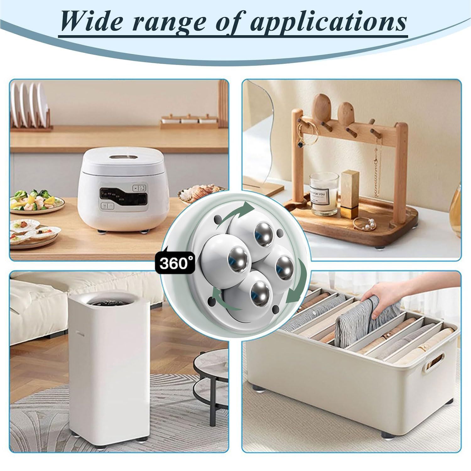 多機能使用 これらの小型家電用ミニキャスターは、様々な家具に最適です。キャスターは360°回転するので、家具を楽に移動できます。
