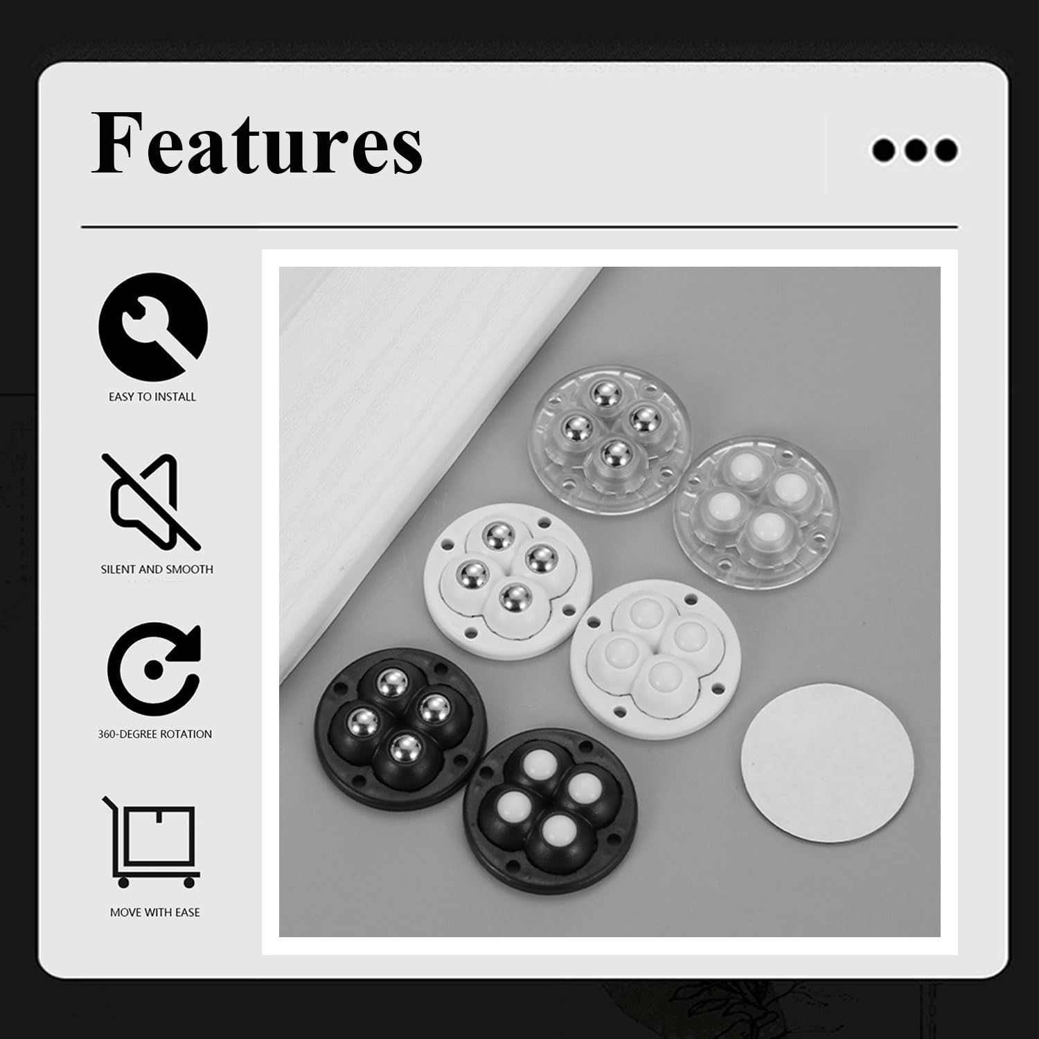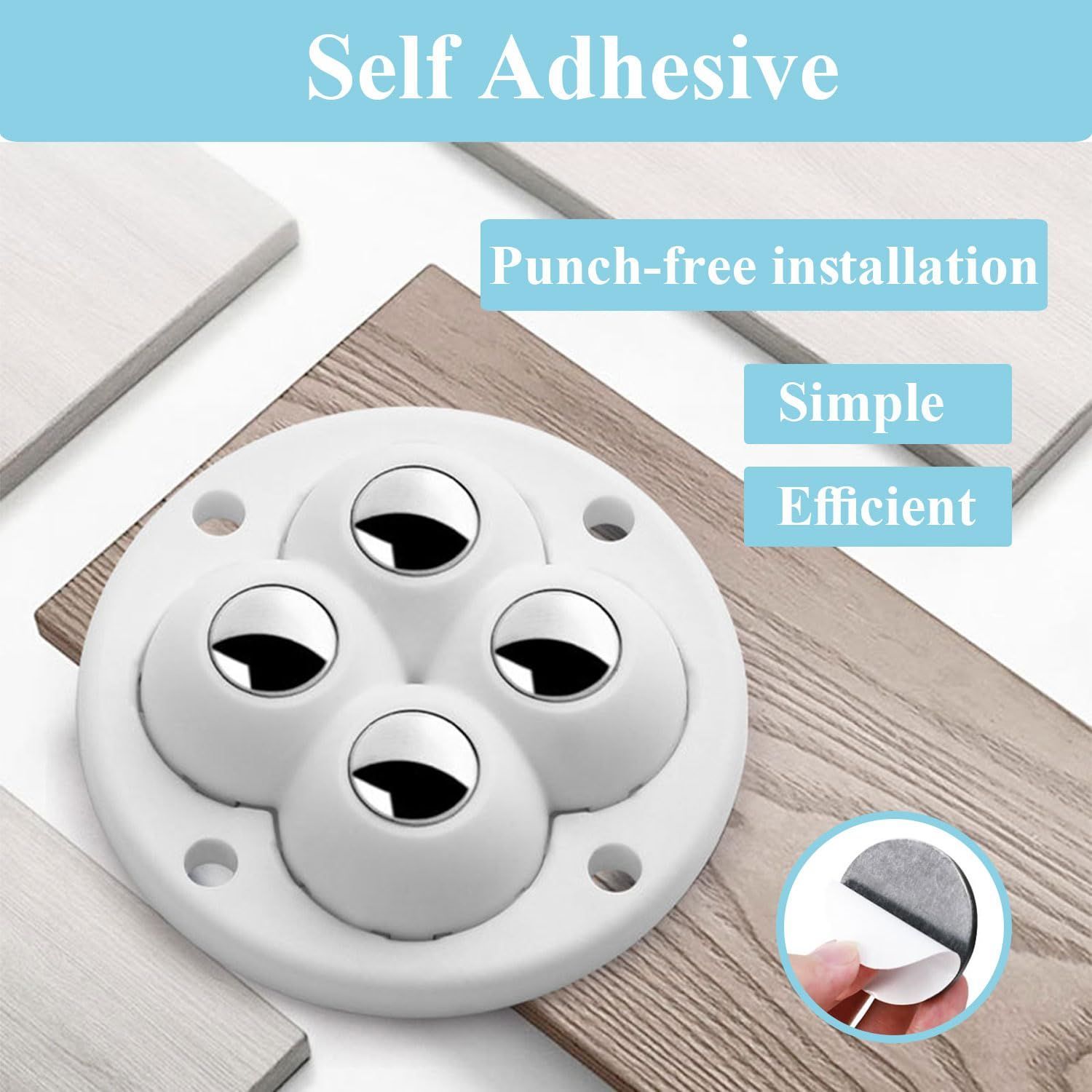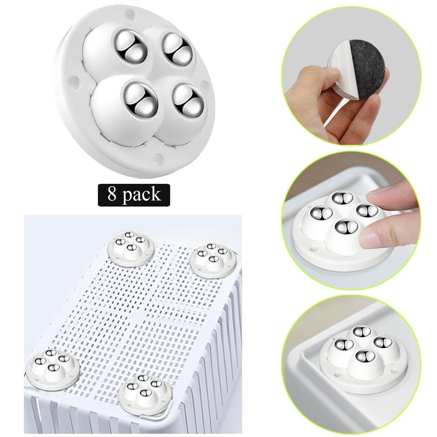 Wopanxye 8個セット ミニキャスター 粘着テープ式 家具移動 360度回転 貼るだけ 小型 ボールキャスター ゴミ箱ホイール 小型 両面テープ、収納ボックス、キッチンキャビネット、おもちゃ箱、植木鉢、カート、コーヒーメーカー、トースター、ベッドサイドテーブル、小型家具 (白 4個鋼球)
