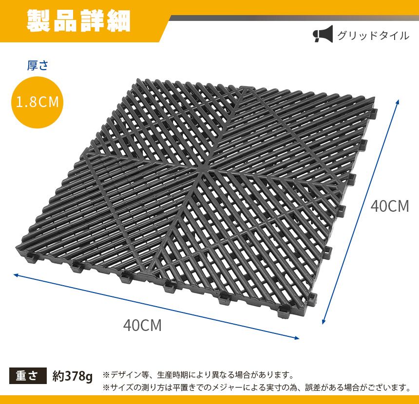 グリッドタイルは、耐久性に優れた樹脂製の連結式タイルです。1枚ごとに簡単に組み合わせが可能で、設置や取り外しがとても簡単!駐車場、ガレージ、ベランダ、玄関、プールサイドなど、多用途にお使いいただけます。