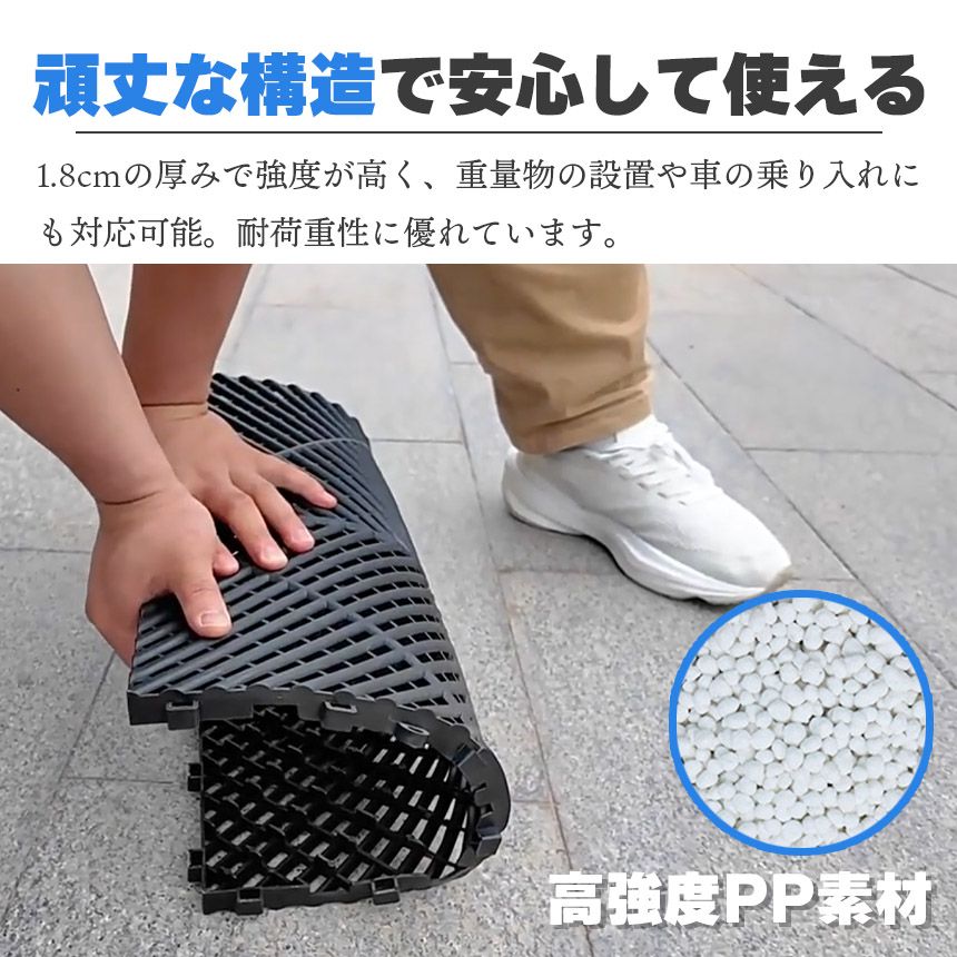 ・表面は隙間のあるグリッド状デザインで、水が溜まりにくく、雨の日でも快適。滑りにくく安全性も高い設計です。