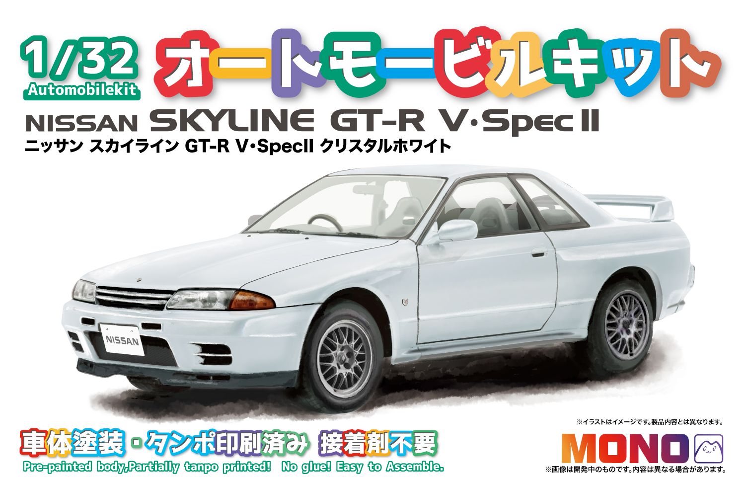モデルはR-32タイプのスカイラインGT-R V・SpecIIを1/32スケールで 再現したプラスチックモデル組み立てキットです。