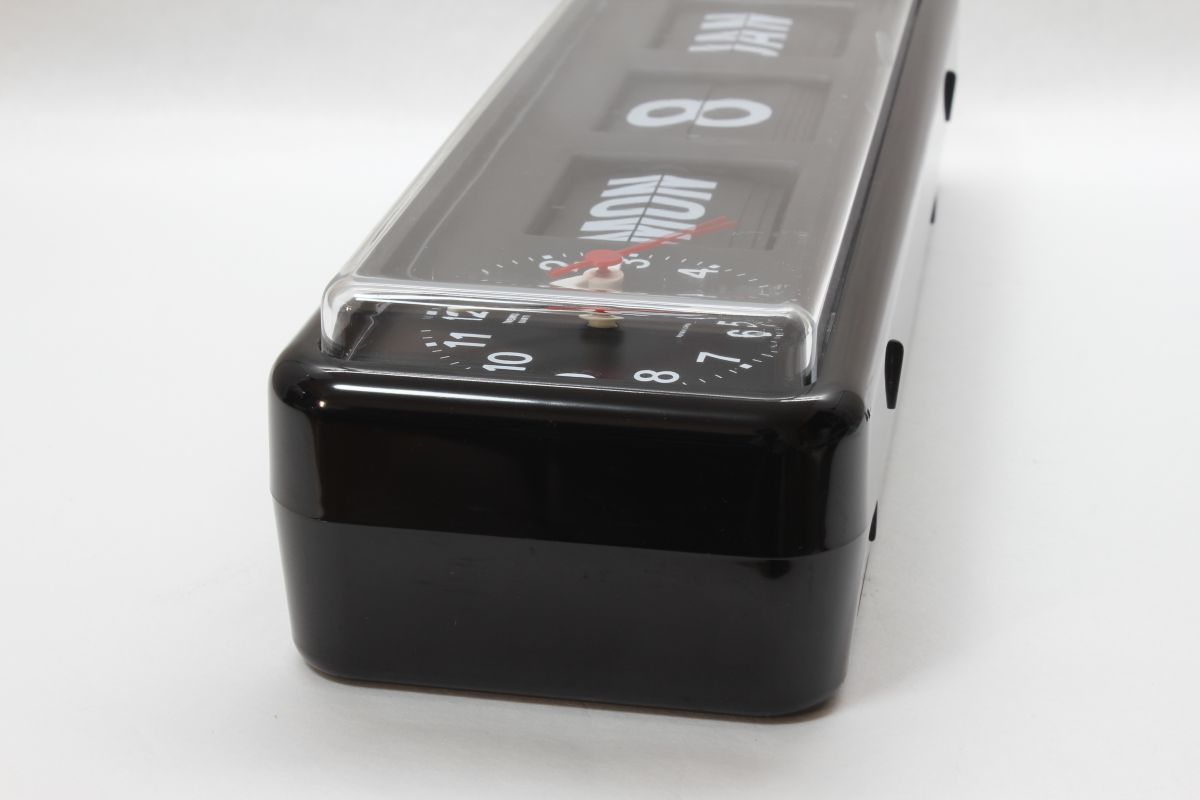 ミッドセンチュリーモダンなデザインと、日付・曜日・時刻がパタパタと切り替わるレトロな動作が魅力的なカレンダークロックです。
