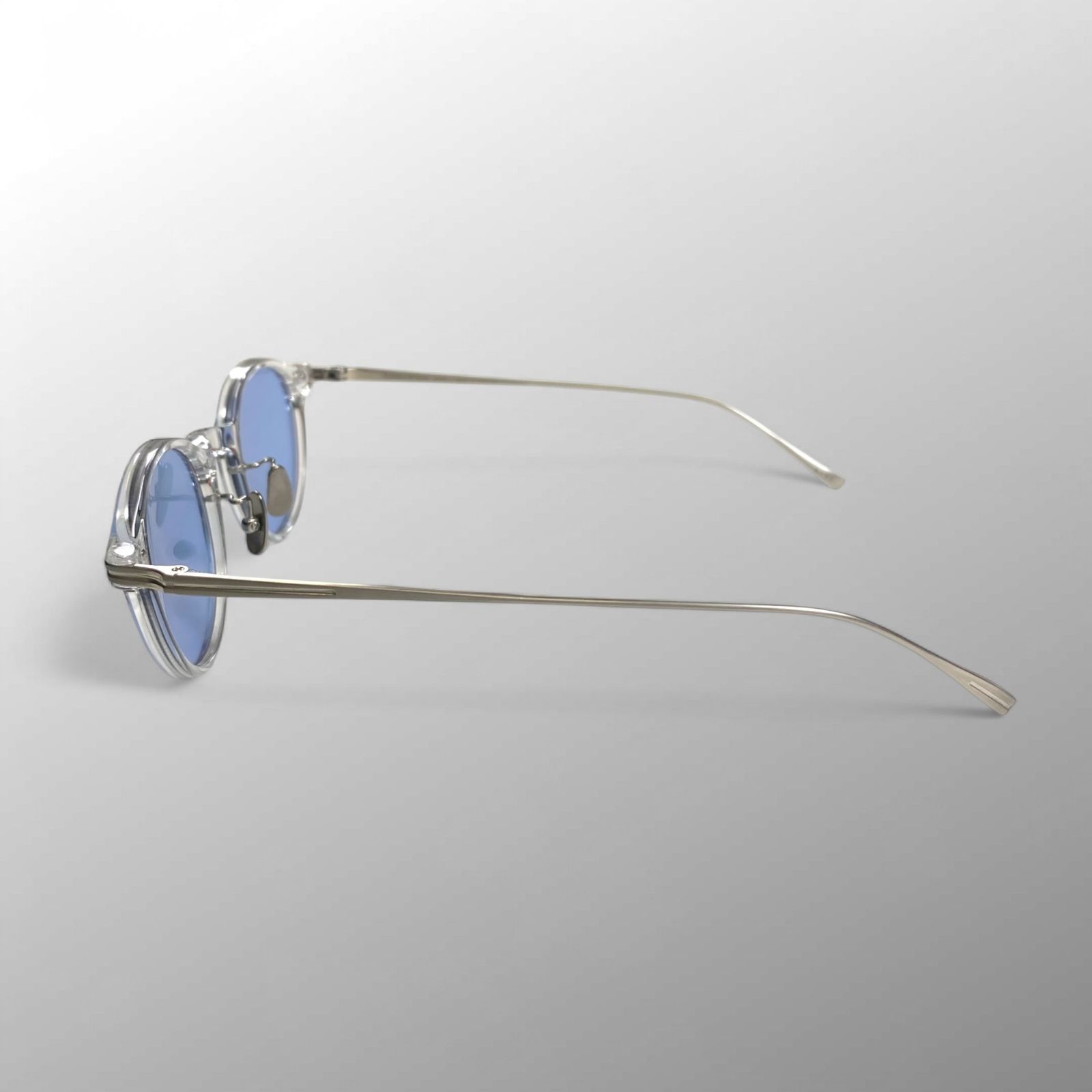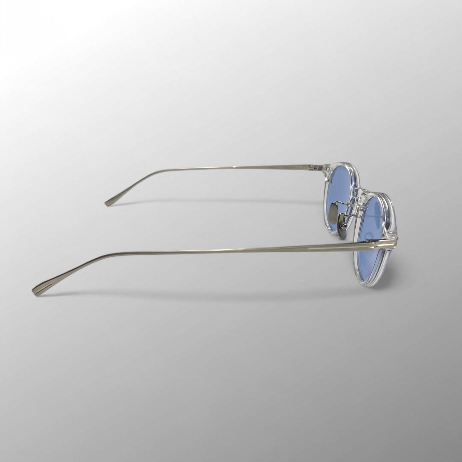 クリアフレームとメタルのテンプルがすっきりとした印象。
