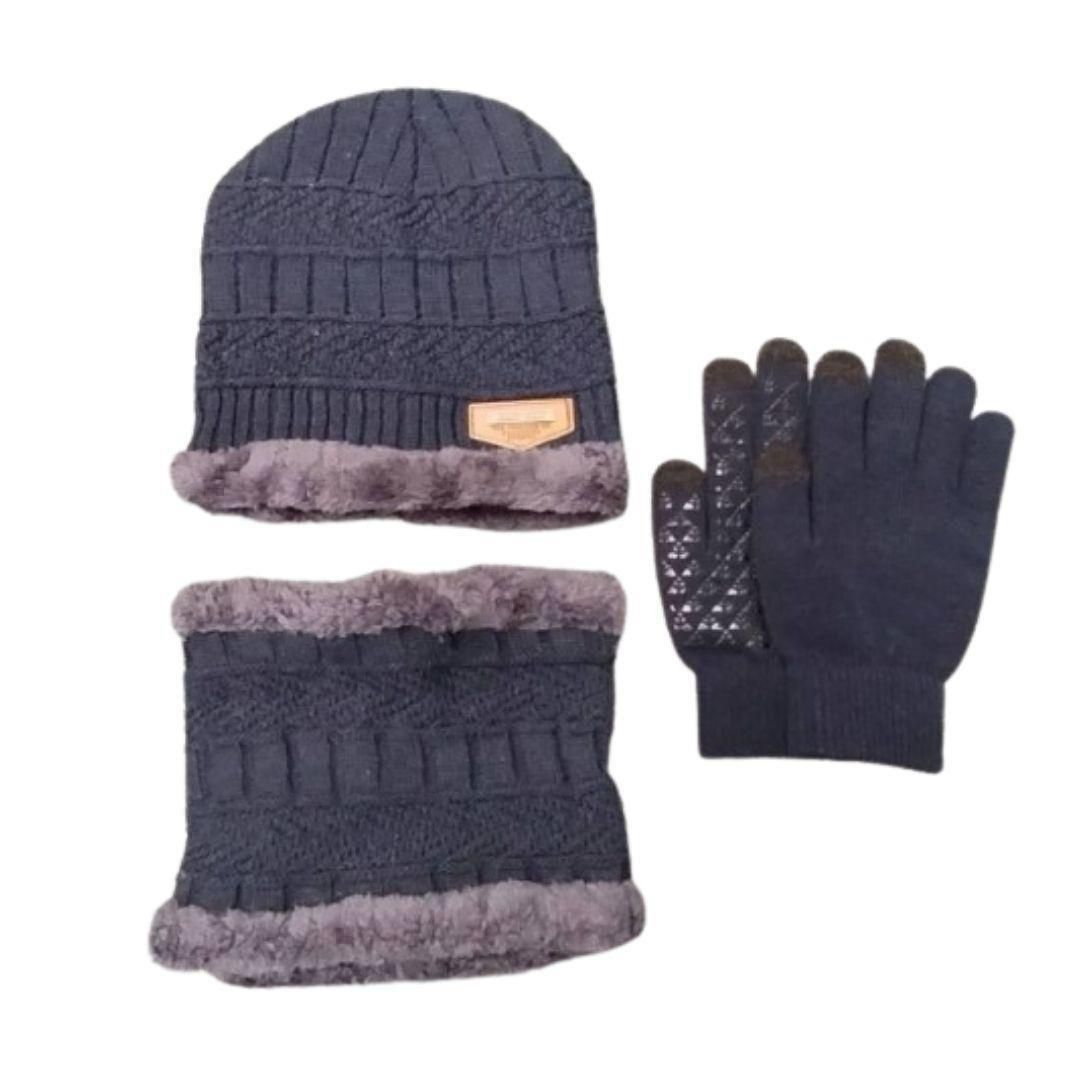 ニット帽 ネックウォーマー 手袋 3点セット メンズ 男女兼用 バレンタイン ギフト グローブ ニットキャップ スマホ対応 タッチパネル対応 裏起毛 柔らかい 防寒 保温 ビーニー 帽子 バイク 自転車 スキー アウトドア キャンプ登山 ネイビー