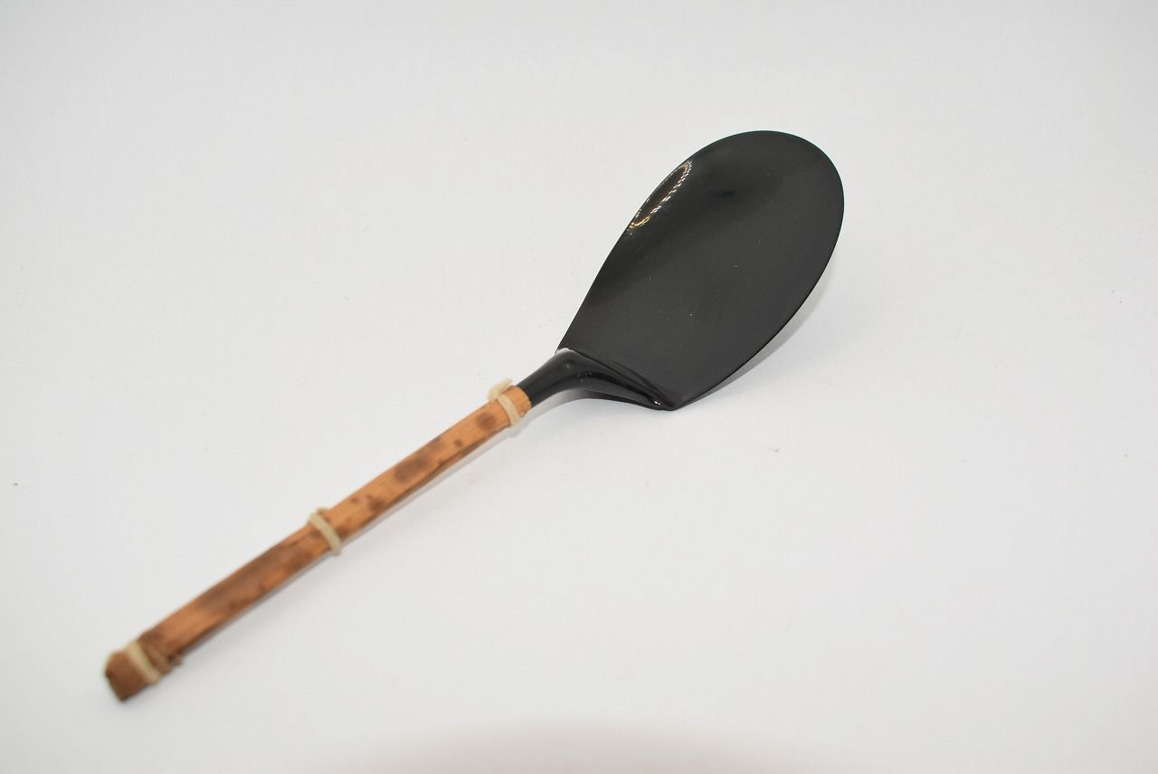 茶道具 灰押 小判 黒塗 灰匙 茶道 (9) 10-9013-09 4.4×15.8cm 高さ3cm 汚れ、錆、擦れはありますが、本体はしっかりしています、お稽古にお使いになるには差し支えありません。