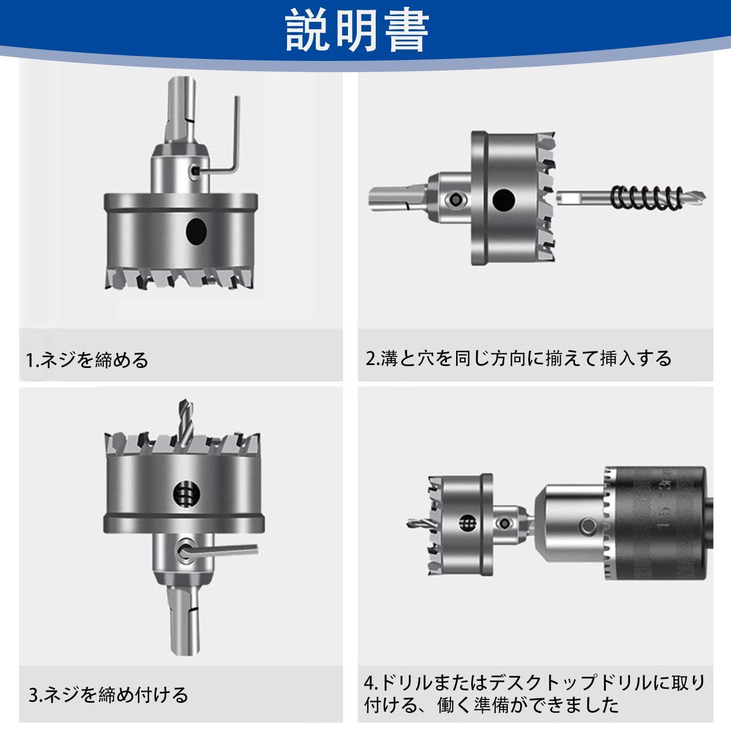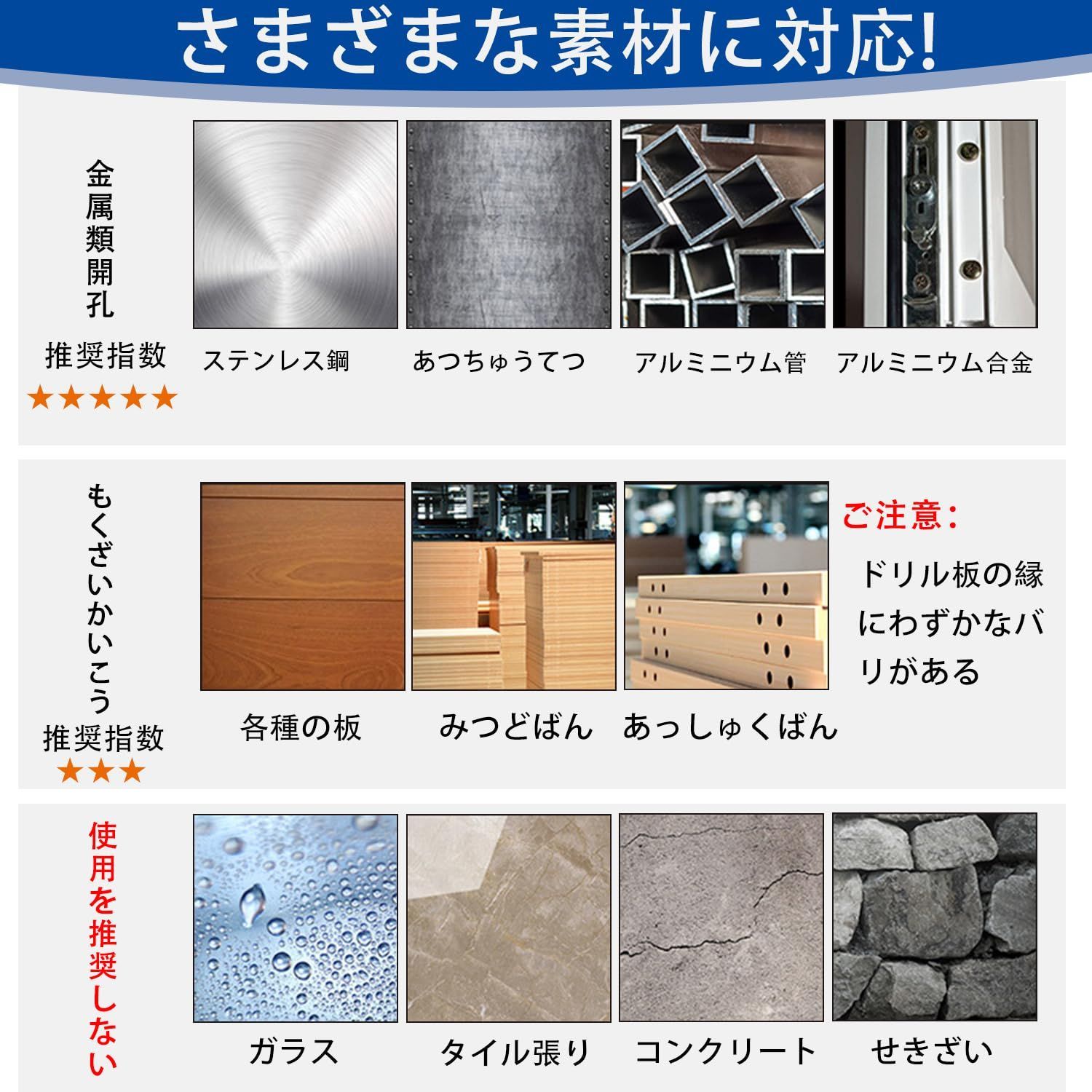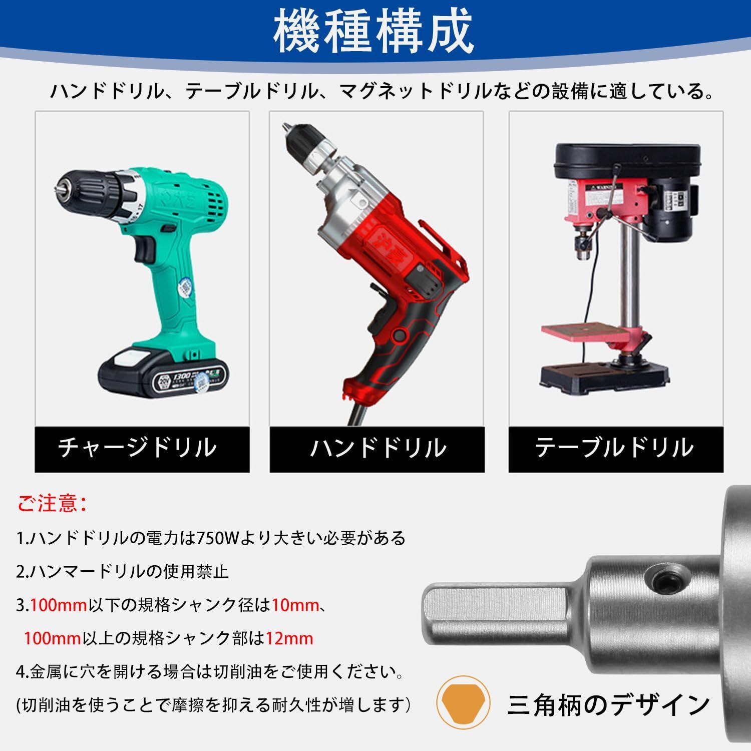 【使用用途】ステンレス板 、鋼板、鉄 板 用、鉄 ヒノキセラミック、ベニア板 、スレート、合板 、波板、アルミ 等 合金板、木材、塩ビ(パイプ管)、石膏ボード、プラスチック、アクリル、発泡スチロール、モルタル、コンクリートなど。換気ダクト 換気扇 ダウンライト 天井ボード 配管工事 電気工事 ドラム缶 外壁の穴あけなどに。優れた切れ味と耐摩耗性を持った超硬チップを使用しております。