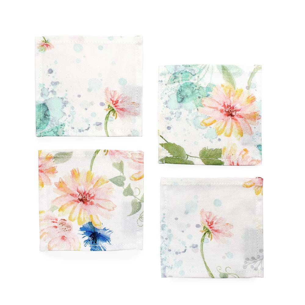 スタイルデコール(STYLE Decor) コースター 綿100% おしゃれ 布 4枚セット 洗える 北欧 花柄 パステル W3000900