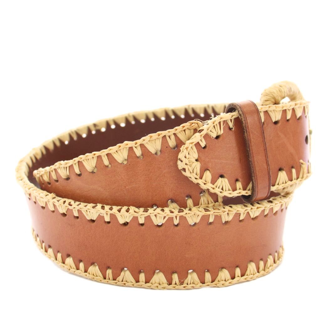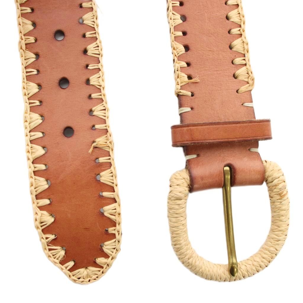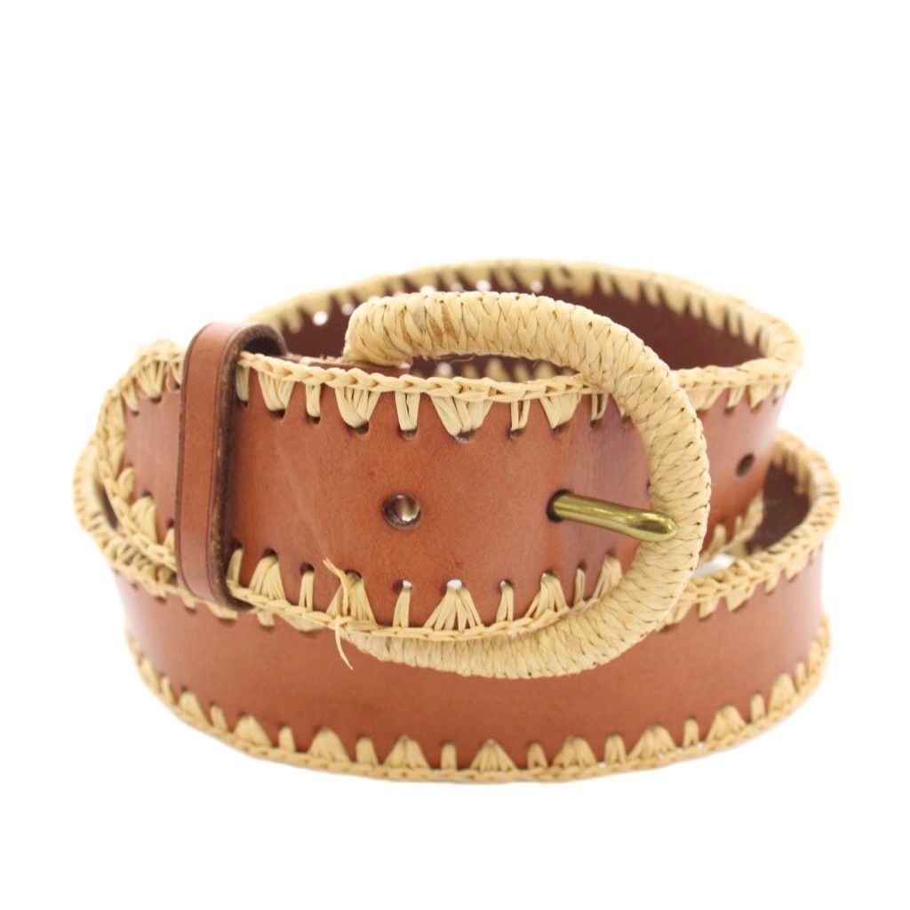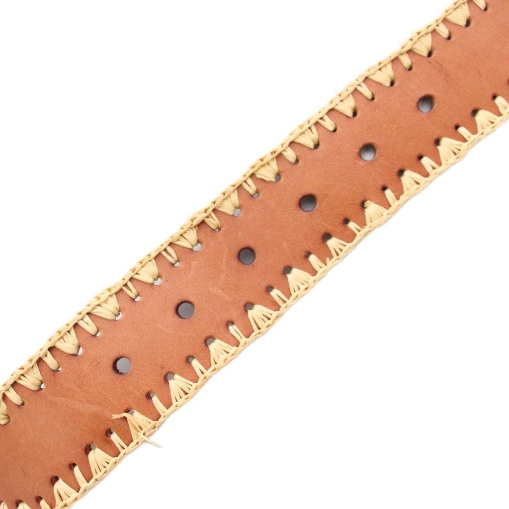 【商品名】ポロ ラルフローレン POLO RALPH LAUREN ラフィアトリムカーフスキンベルト レザー 編込み M 茶 ブラウン /HN