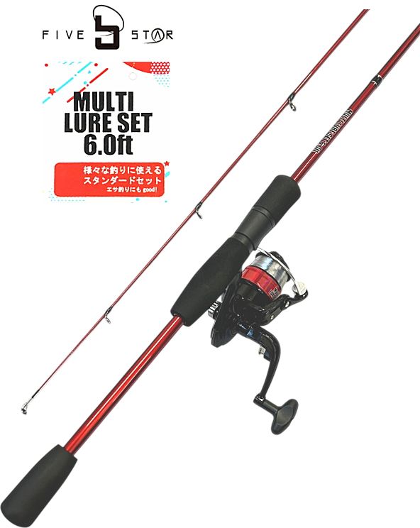 ルアー入門セット ファイブスター マルチルアーセット 6.0ft レッド / ロッド+糸付きリールセット