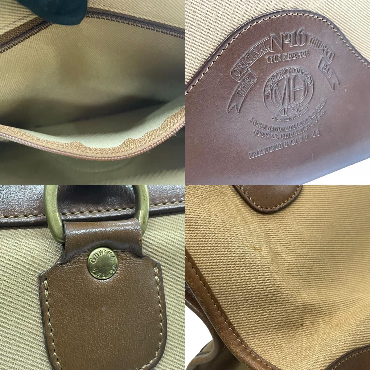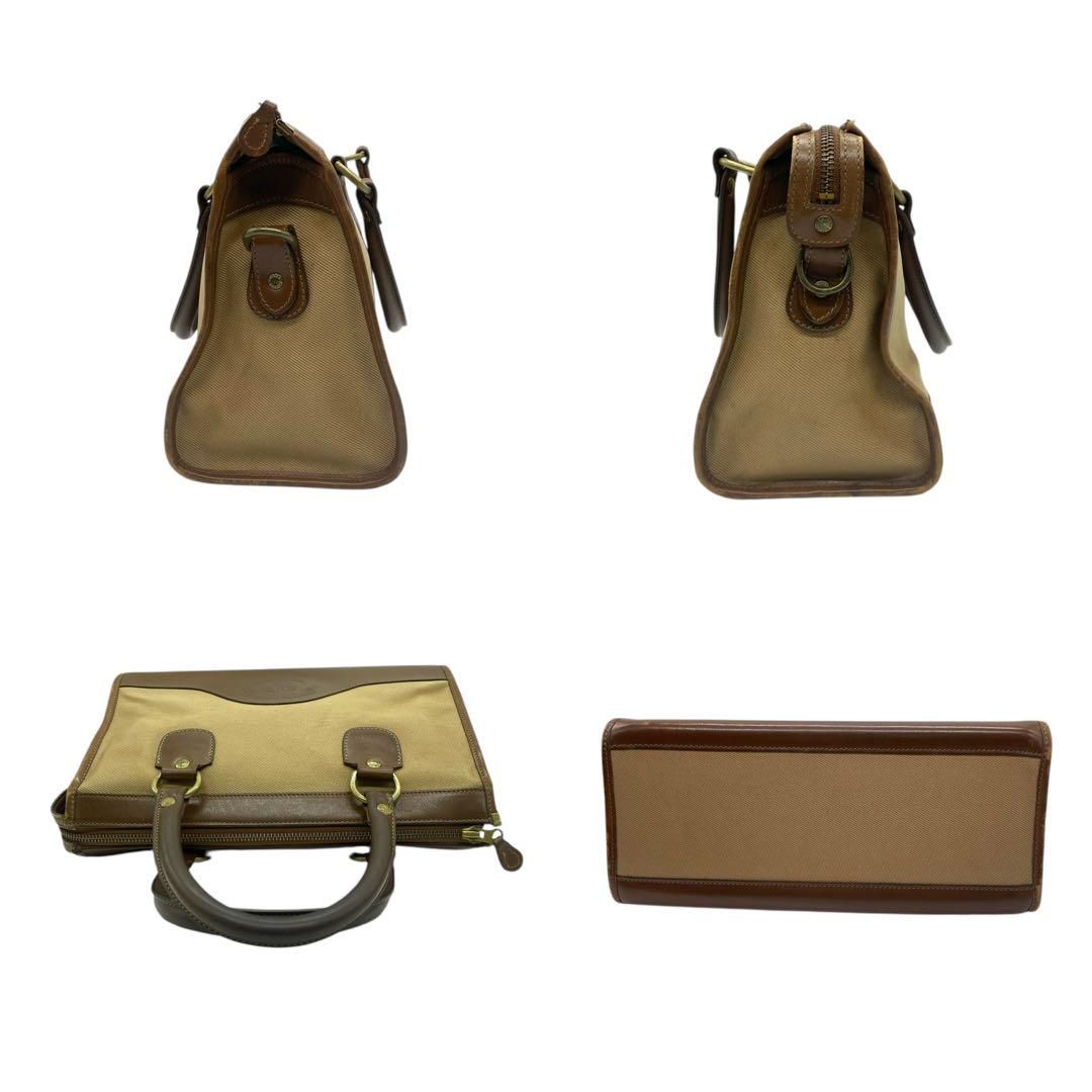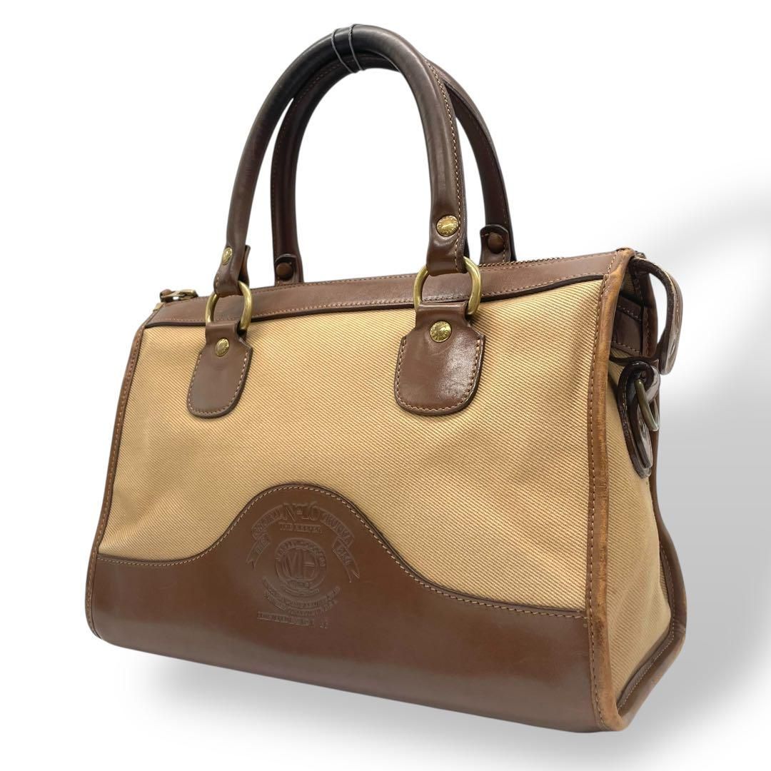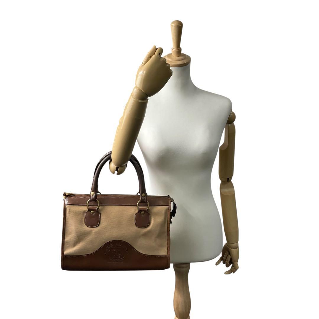 クラシックな気品と職人技が息づく GHURKA(グルカ)の希少モデル「No.16」ハンドバッグ。上質なキャンバスとレザーのコンビ素材に、ブランドを象徴するロゴ刻印と烙印が施された逸品です。ベージュとブラウンの落ち着いた色合いが洗練された印象を与え、普段使いからフォーマルな場面まで幅広く活躍します。堅牢な造りと機能性を兼ね備えたデザインで、長く愛用できるバッグです。