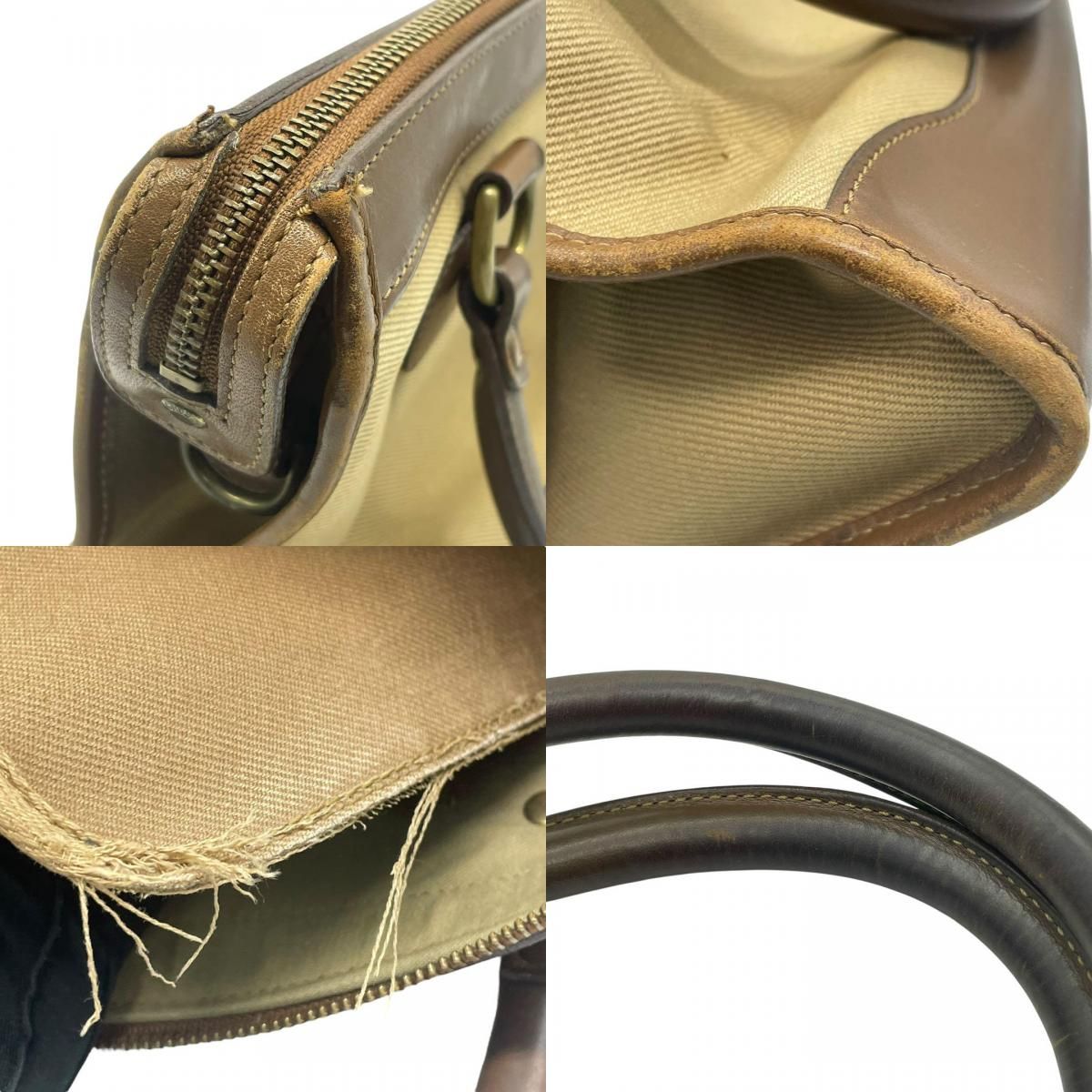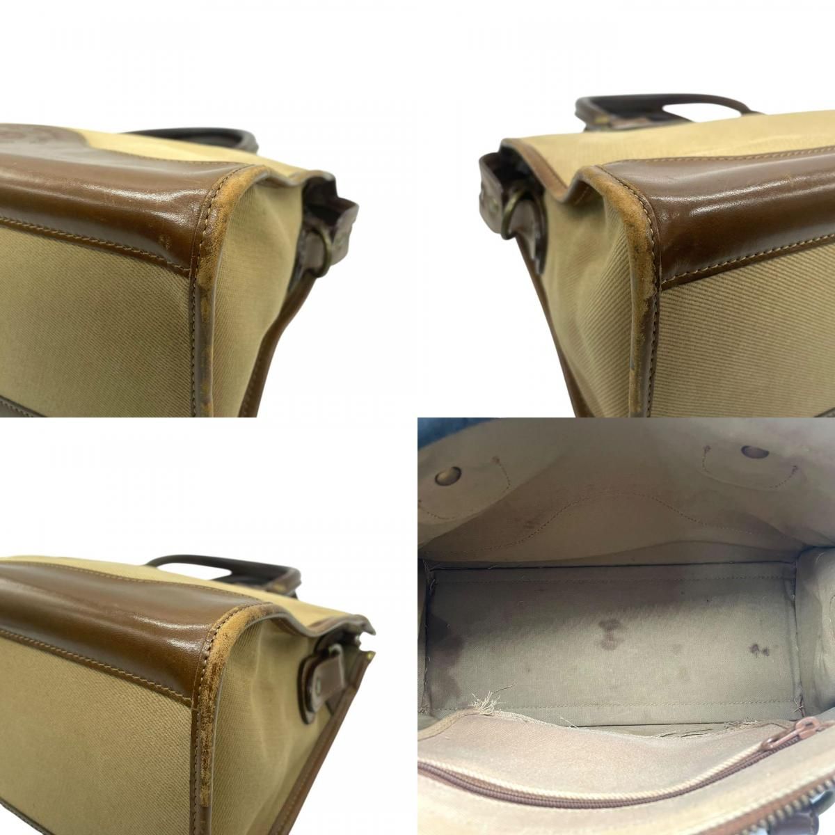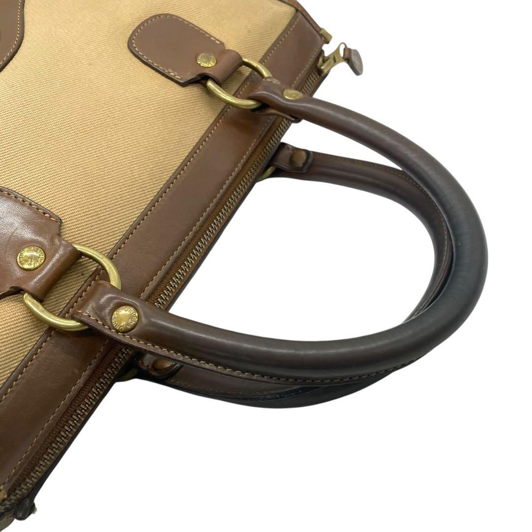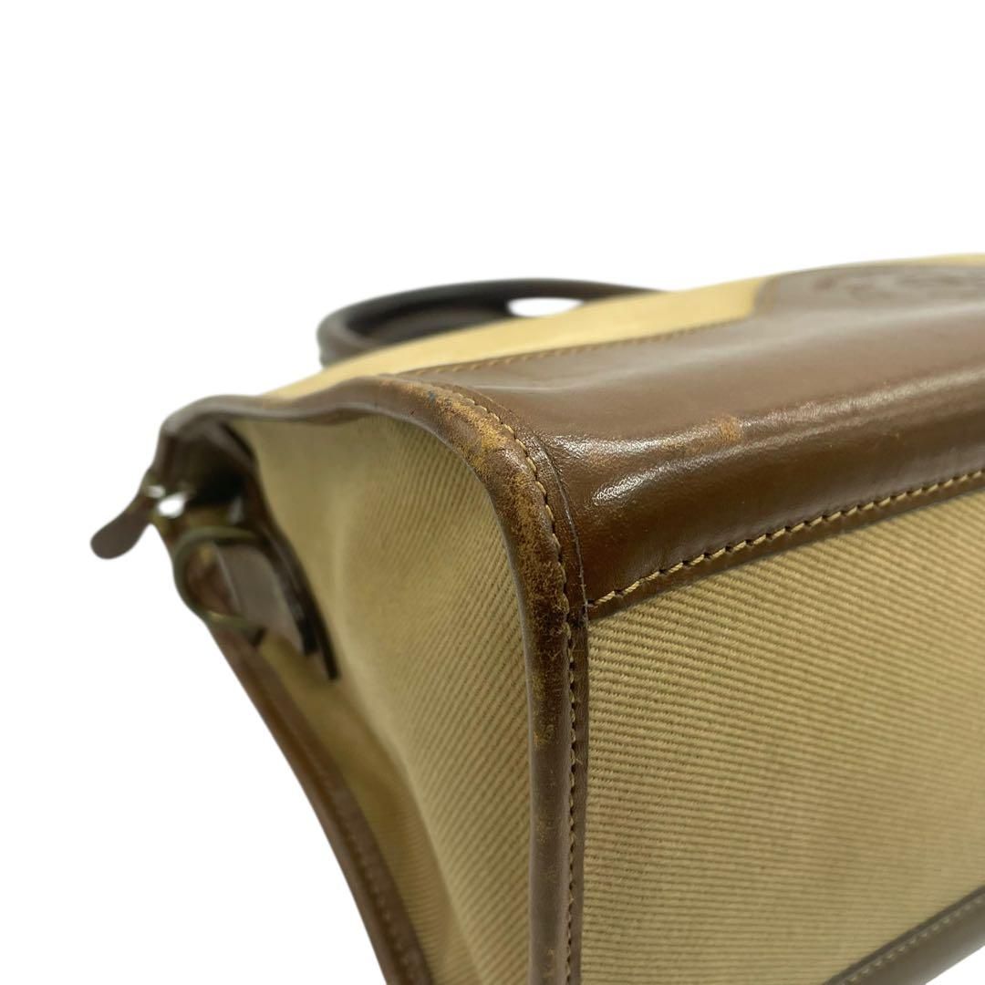 クラシックな気品と職人技が息づく GHURKA(グルカ)の希少モデル「No.16」ハンドバッグ。上質なキャンバスとレザーのコンビ素材に、ブランドを象徴するロゴ刻印と烙印が施された逸品です。ベージュとブラウンの落ち着いた色合いが洗練された印象を与え、普段使いからフォーマルな場面まで幅広く活躍します。堅牢な造りと機能性を兼ね備えたデザインで、長く愛用できるバッグです。