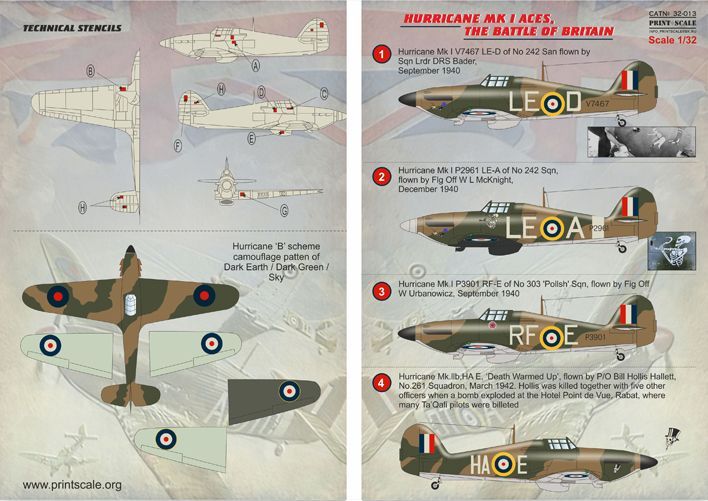 プリントスケール 32-013 1/32 ハリケーン MK I バトルオブブリテンのエース コンプリートセット