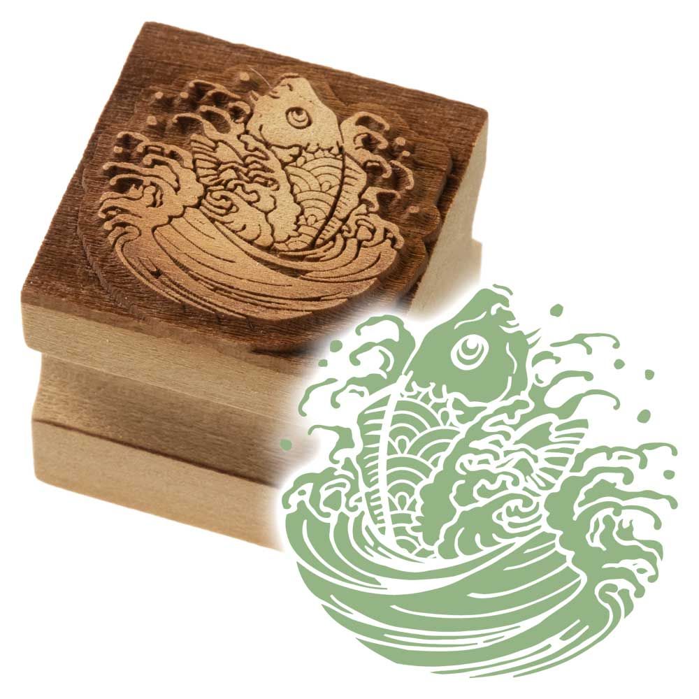 版木スタンプ 波に鯉 京からかみ 木版ミニスタンプ 木製・朴 季節のお便り 年賀状 便箋 手紙 京都府の工芸品