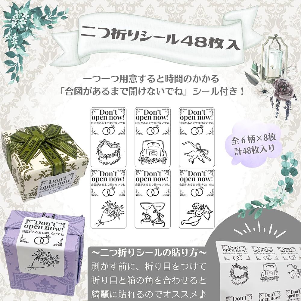 「まだ開けないでね」シールが付属しているので、結婚式準備の負担を少しでも減らすことができます。