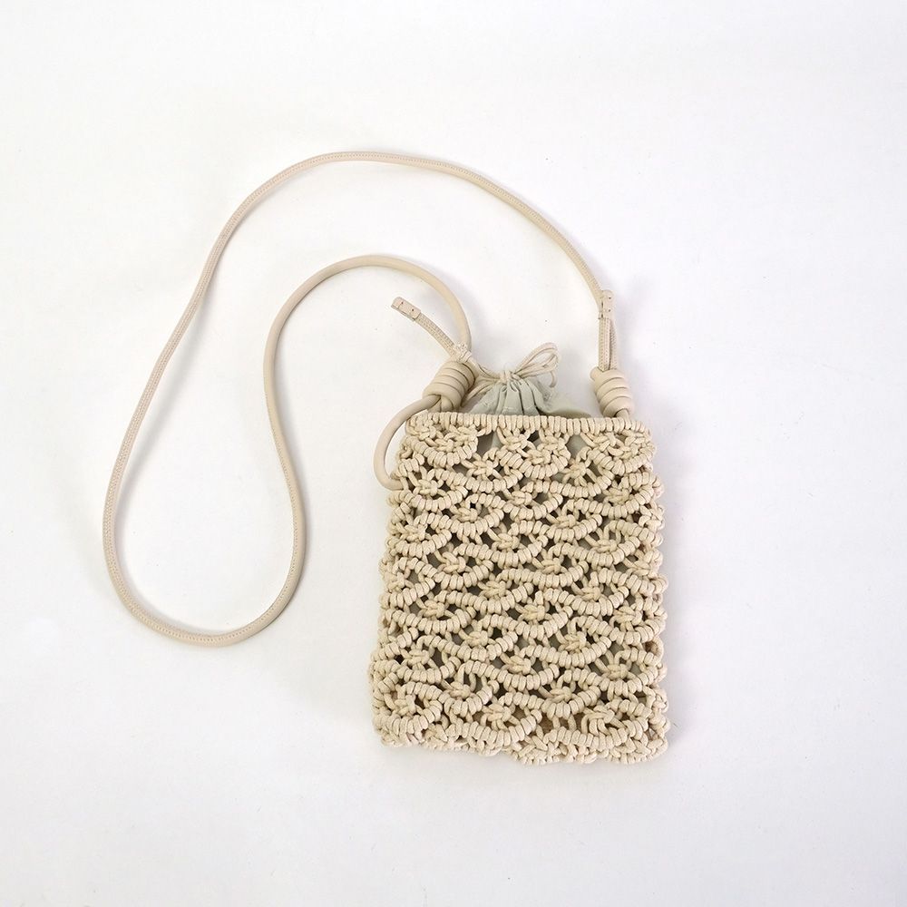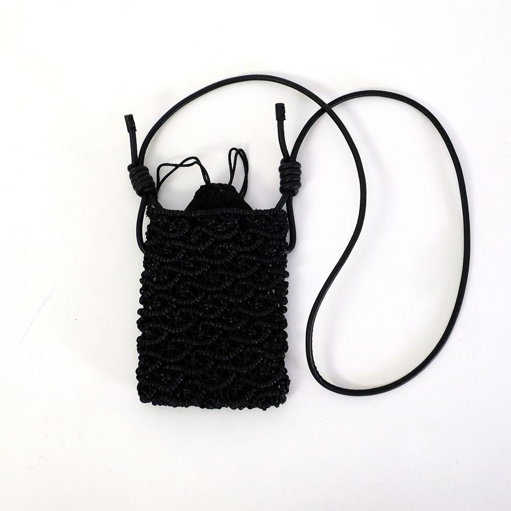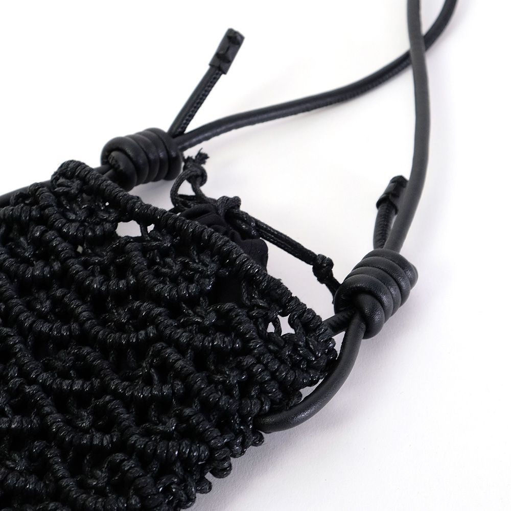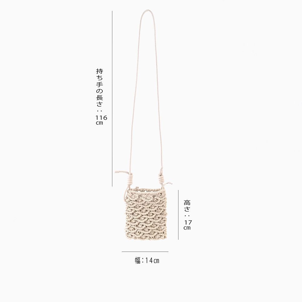 密な編み地とフェイクレザーの巻きコードが高見えするミニショルダー。スマホが丁度入る大きさでタウンユース使いにぴったりです。