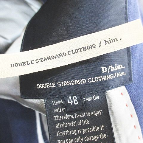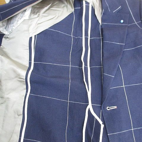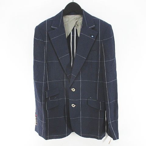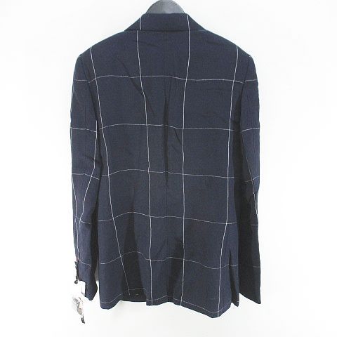【商品名】ダブルスタンダードクロージングヒム D/him. 格子柄 テーラード ジャケット 背抜き 麻 リネン 48 紺系 ネイビー 日本製 裏地 タグ付