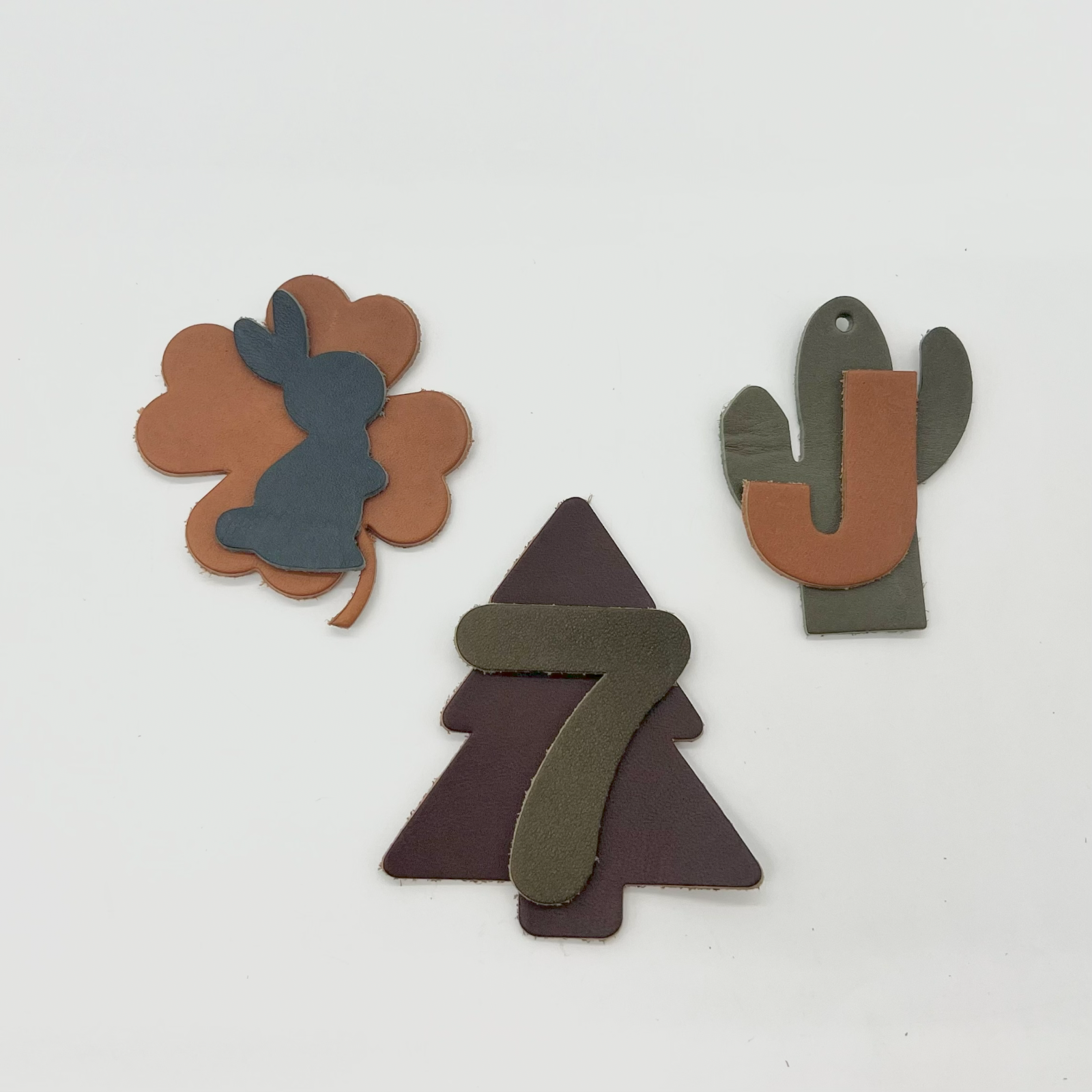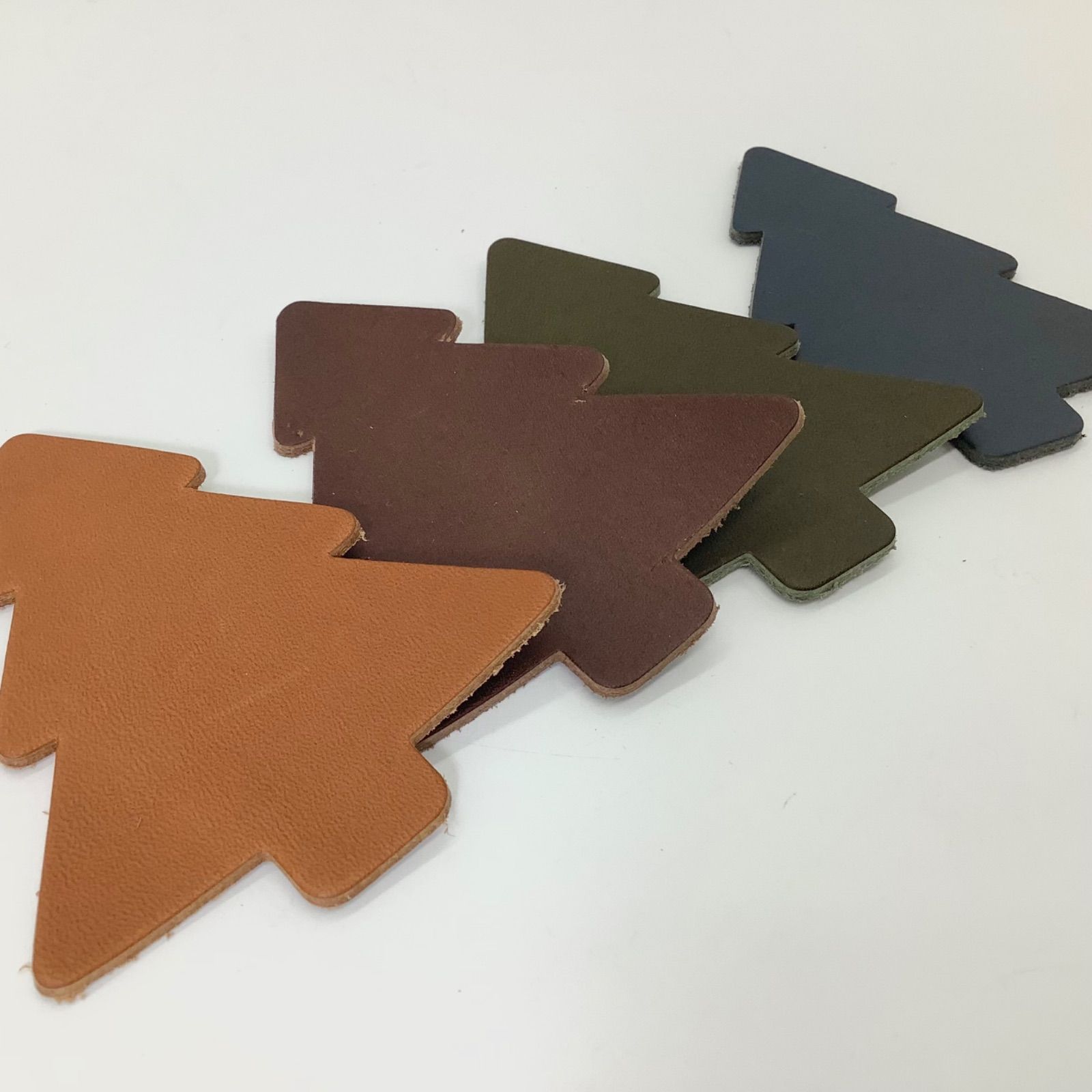 革の端切れを活用して、型抜きしたレザーチャーム12枚セット【ツリー】です。