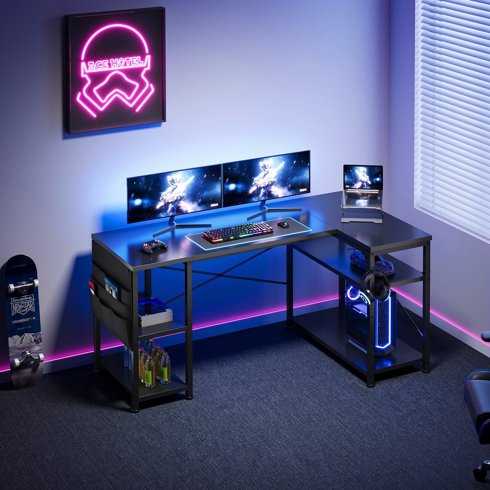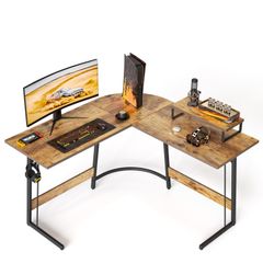 YeTom ゲーミングデスク l字デスク机pcデスク幅130cm パソコンデスク勉強机学習机 左右入替可棚板高さ調節可能 収納袋付き オフィスデスク ワークデスク黒い