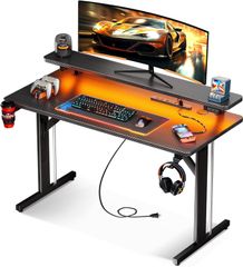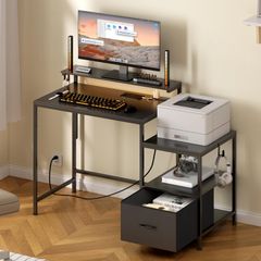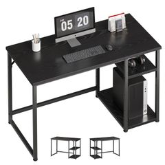 【スマート収納でスッキリ整理】 ・側面の厚手収納ポケットで文房具や書類を収納 ・デスク下の調整可能な2段棚でPC本体やプリンターを配置 ・ヘッドフォンフック付きでコード絡まり防止