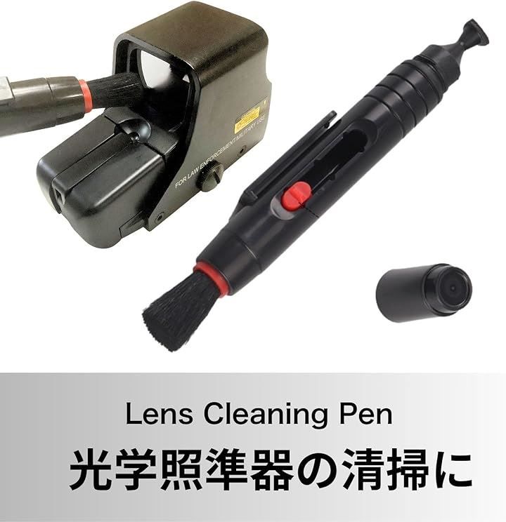 「ライフルスコープ・ドットサイトの清掃に」本製品は、ライフルスコープやドットサイトのレンズクリーニングに特化したレンズペンおよびブロアーのセット商品です。
