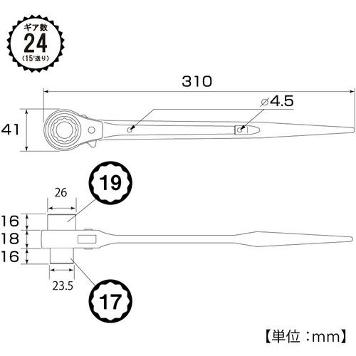 TOP 両口ラチェットレンチ ブラックニッケルメッキ仕様
